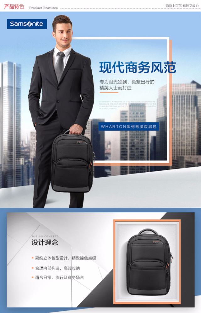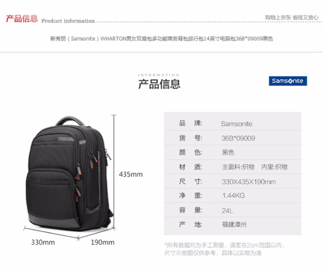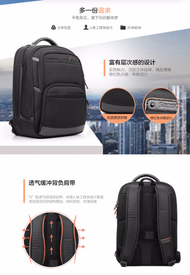 Samsonite computer bag backpack business backpack laptop bag casual urban 36B*09009 black 15 inches