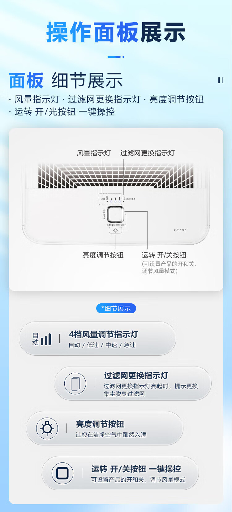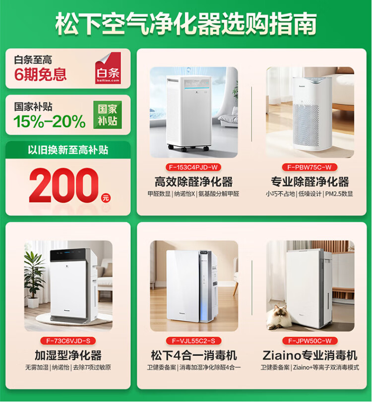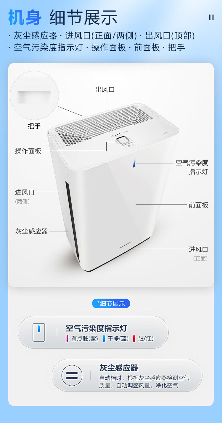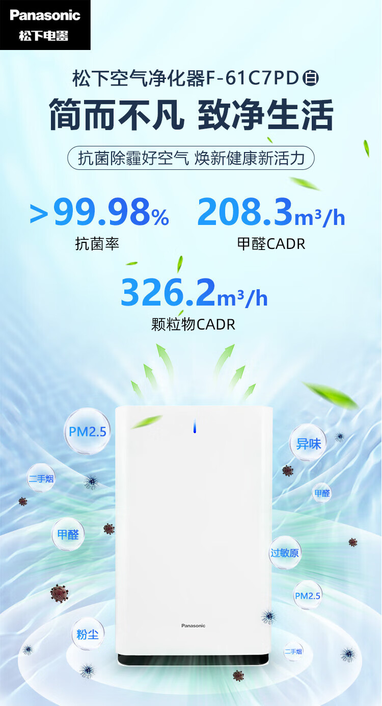 Panasonic National Subsidy Household Air Purifier Removes Formaldehyde, Toluene, Sterilizes Pets, Removes Odors, Removes Allergens, Air Purifier 61C7PD