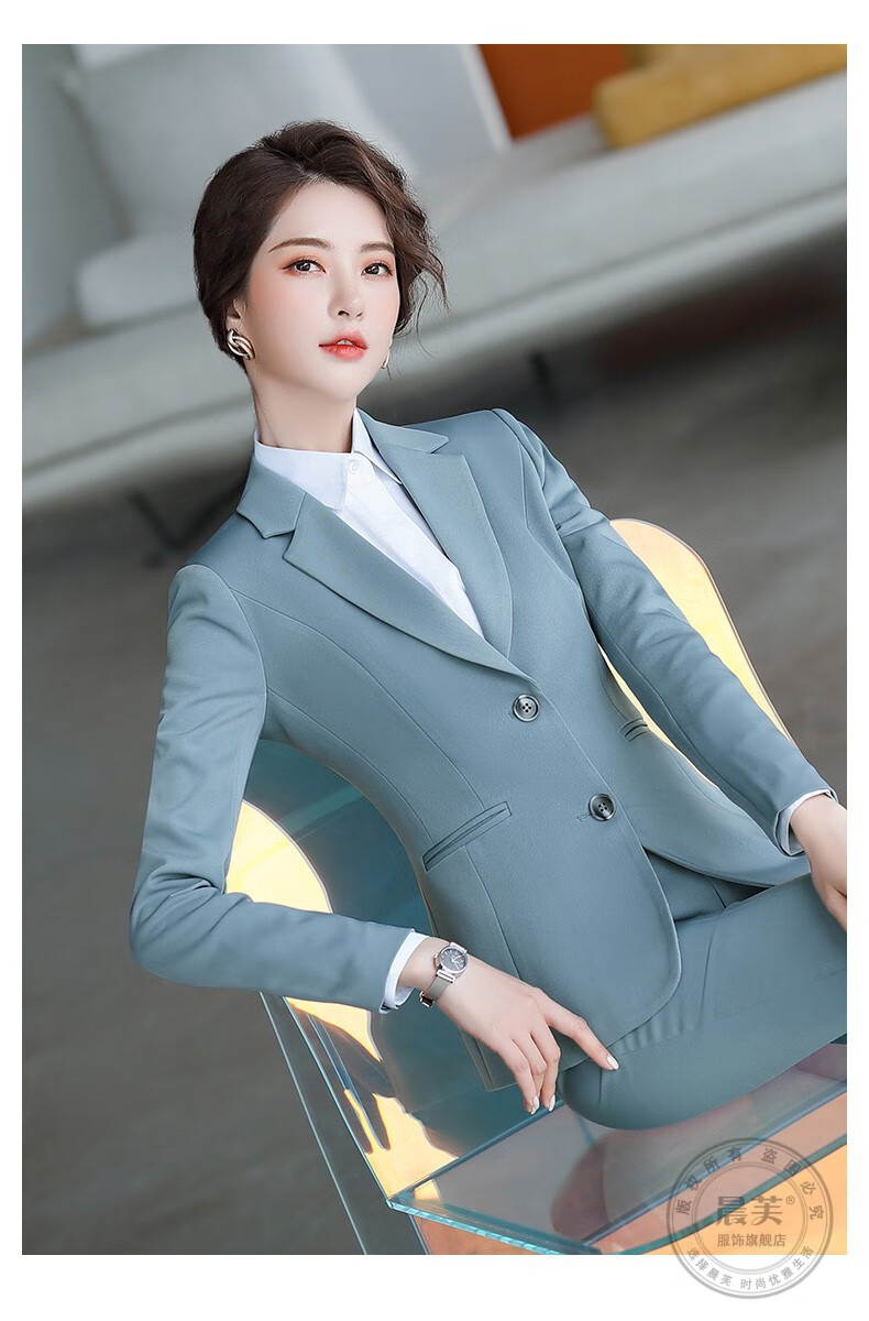 Chenfu professional blazer women's business interview formal white-collar sales suit suit manager hotel front desk work clothes gray suit + trousers XL recommended 110-120 Jin Jin equals 0.5 kg