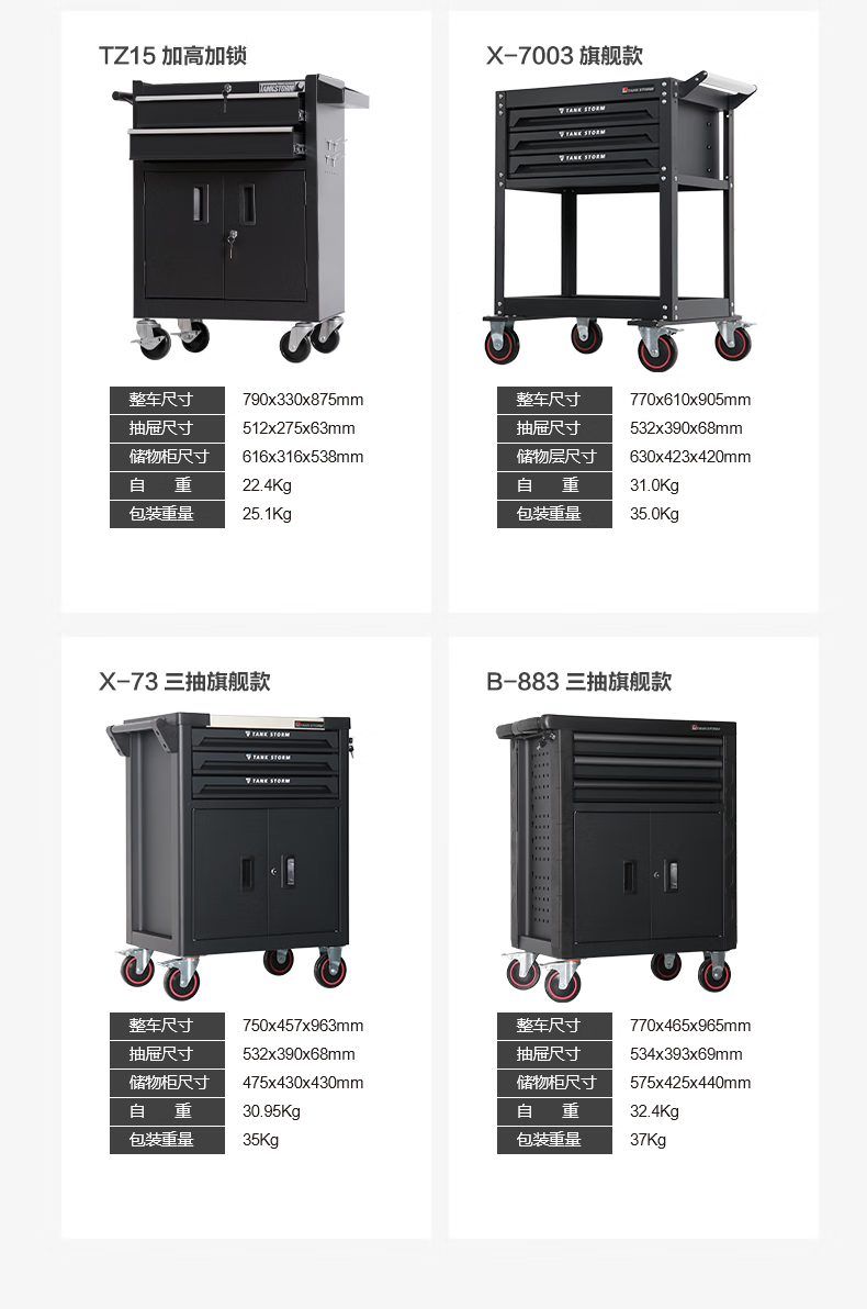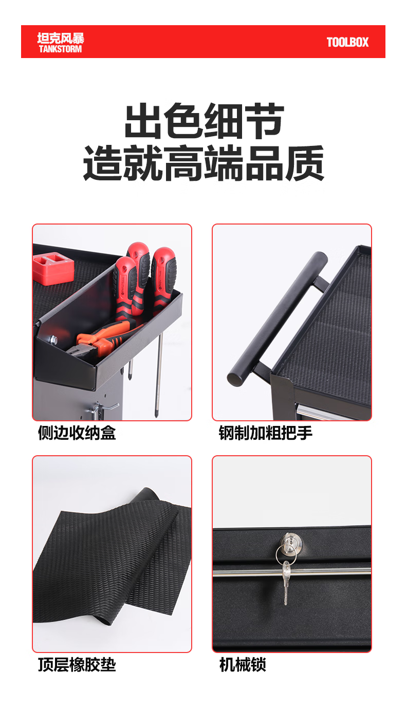 TANKSTORM Tool Cart Trolley Auto Repair Tool Cabinet Multifunctional Mobile Parts Cart Repair Workbench Tattoo Tool Box TZ12 Matte Black