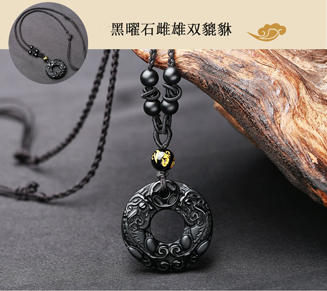 Ciling Pavilion obsidian Pixiu pendant male and female double Piqiu Pixiu peace buckle jewelry pendant necklace pendant black men and women