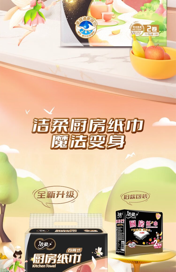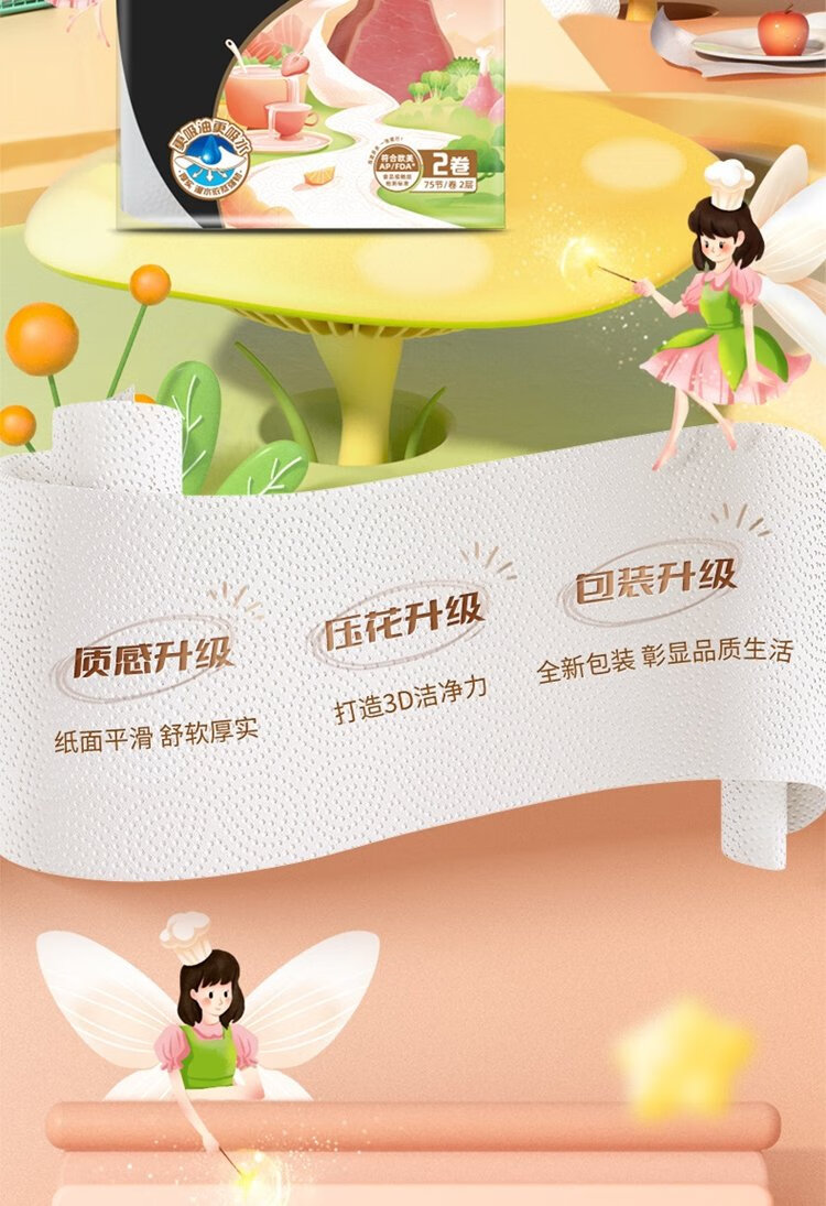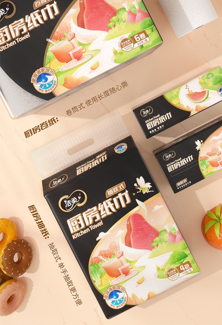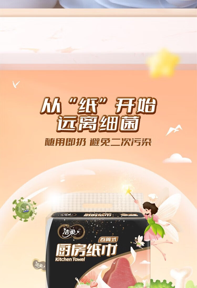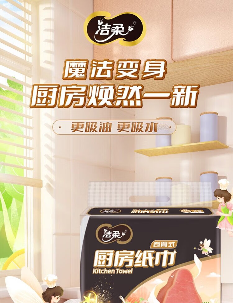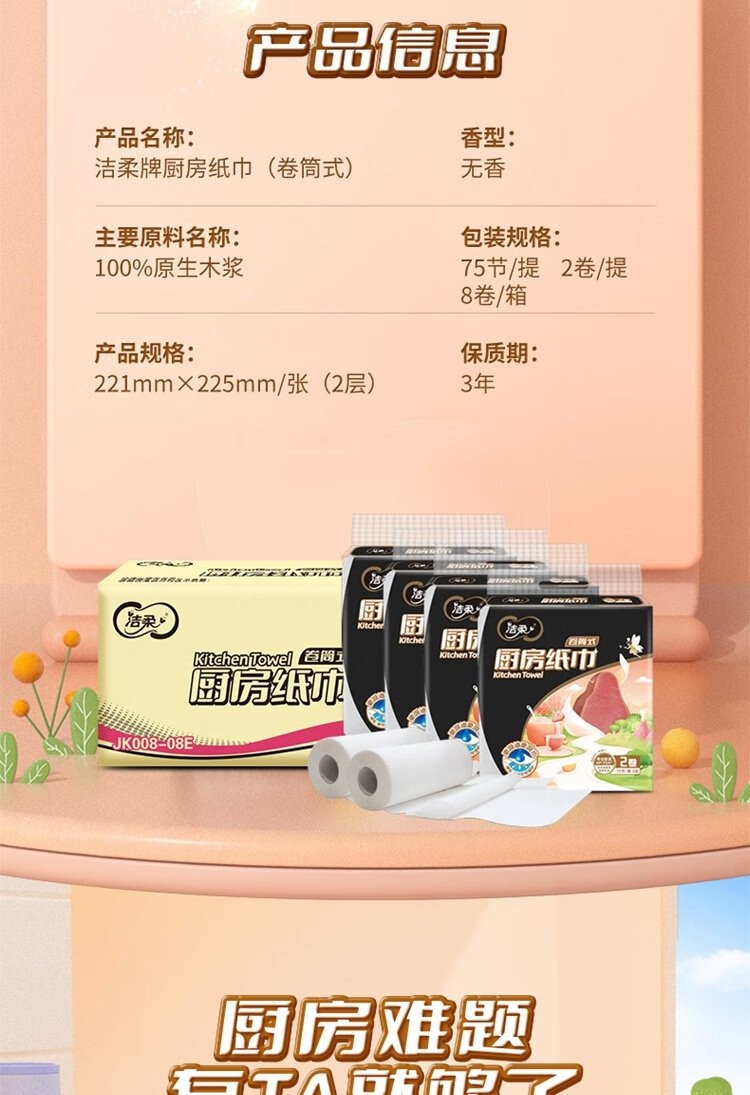 Jierou kitchen paper 75 sections * 8 rolls absorbent thickened double layer 160g 8 rolls disposable kitchen paper