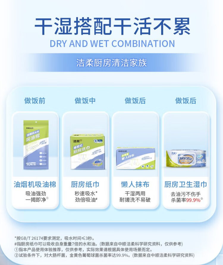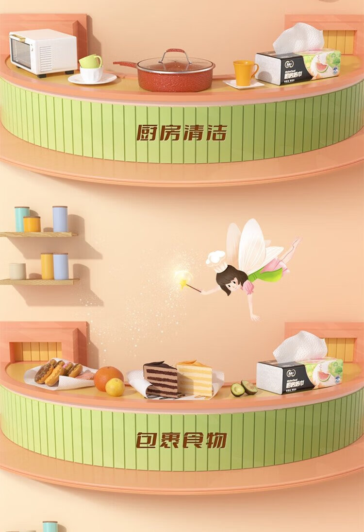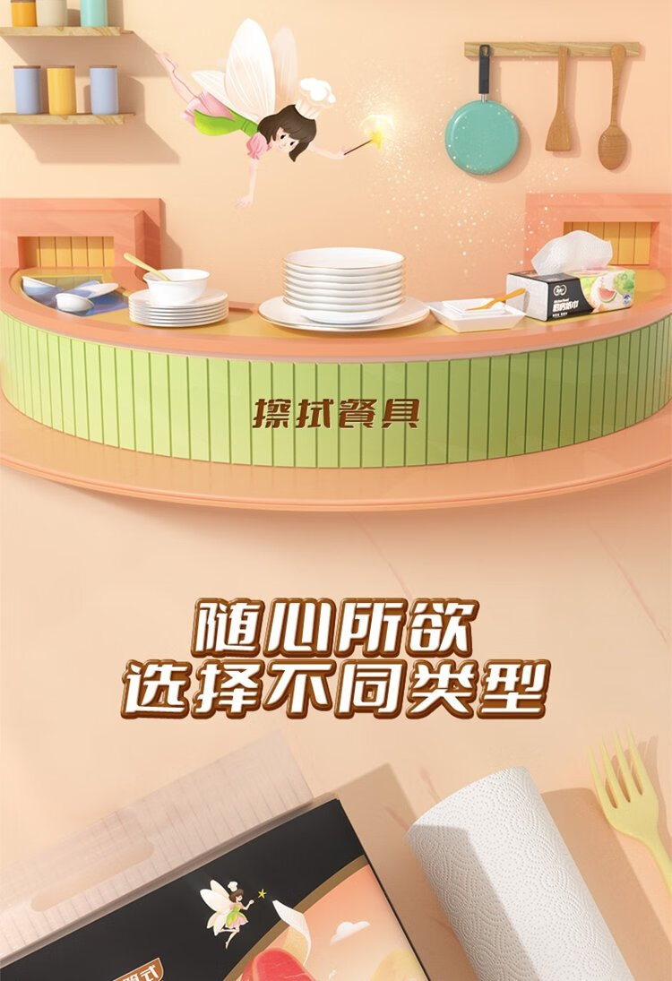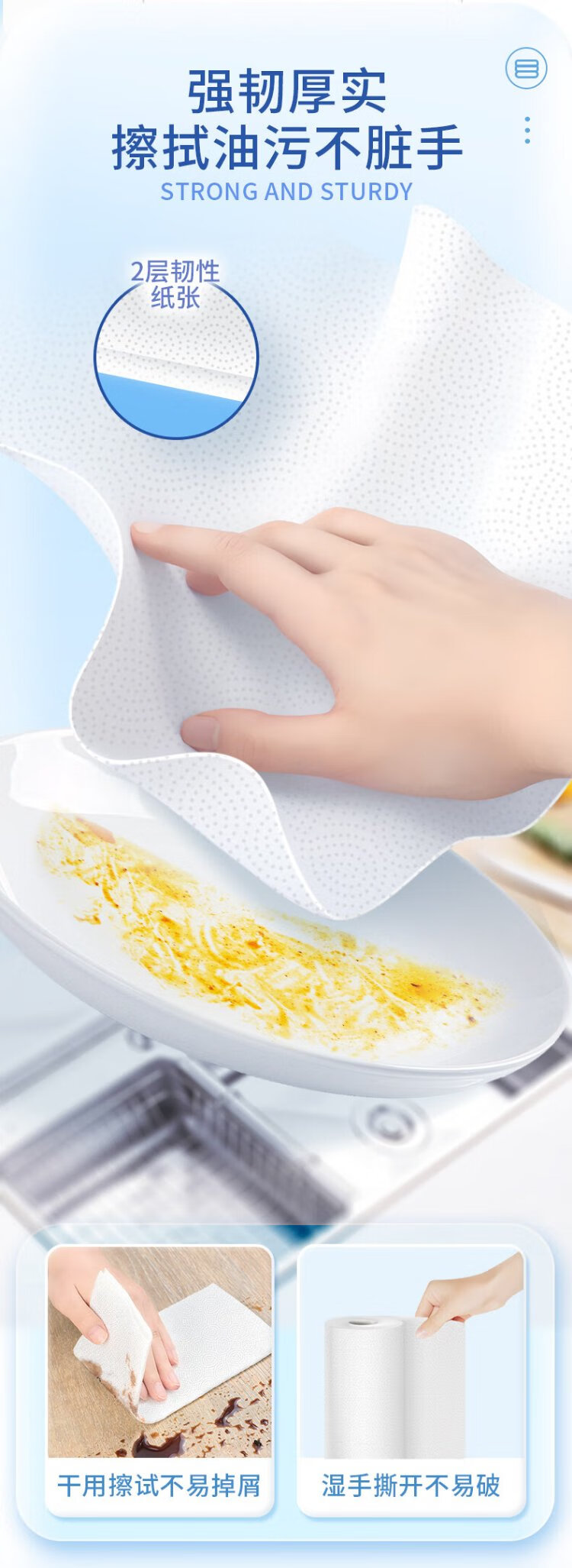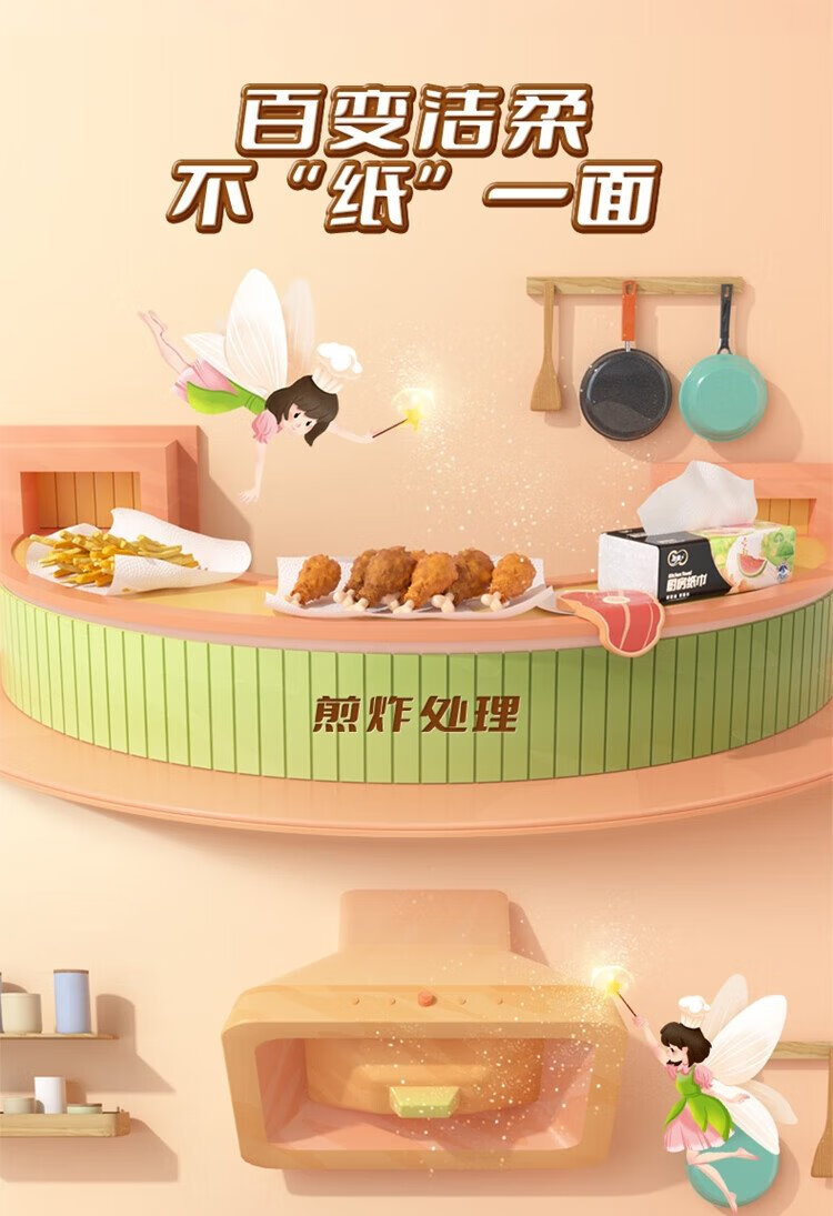 Jierou kitchen paper 75 sections * 8 rolls absorbent thickened double layer 160g 8 rolls disposable kitchen paper