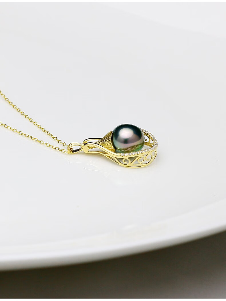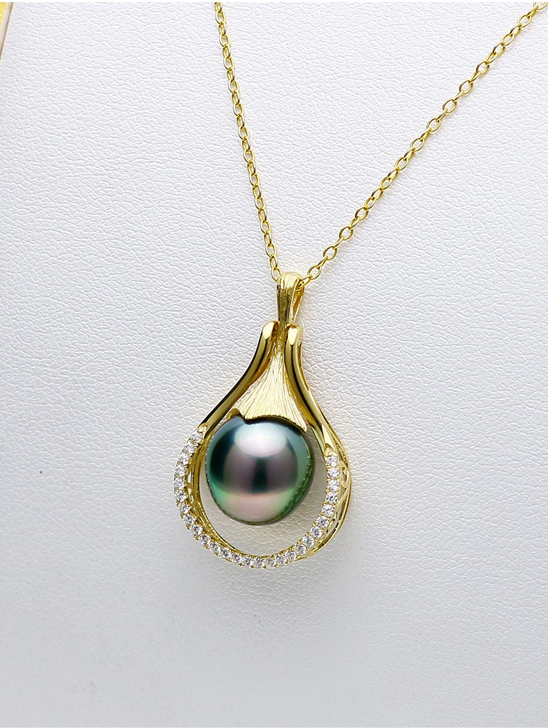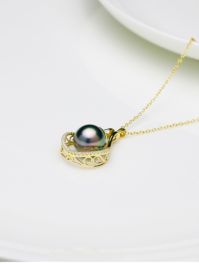 Precious 18K gold inlaid with 10-11mm Tahitian black pearl pendant, peacock green saltwater pearl pendant, with certificate ZG2069-EYP00