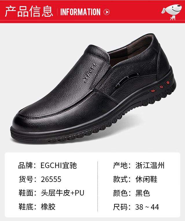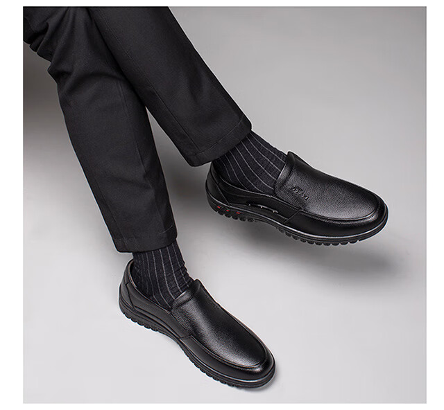 ECHI business casual men's first-layer cowhide soft-soled driving shoes for men 26555 black 40