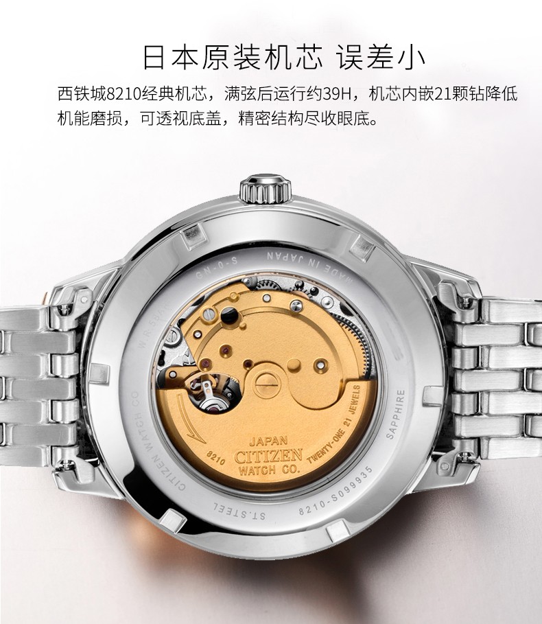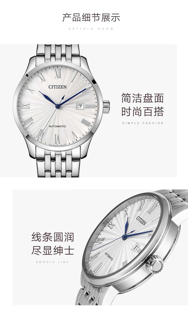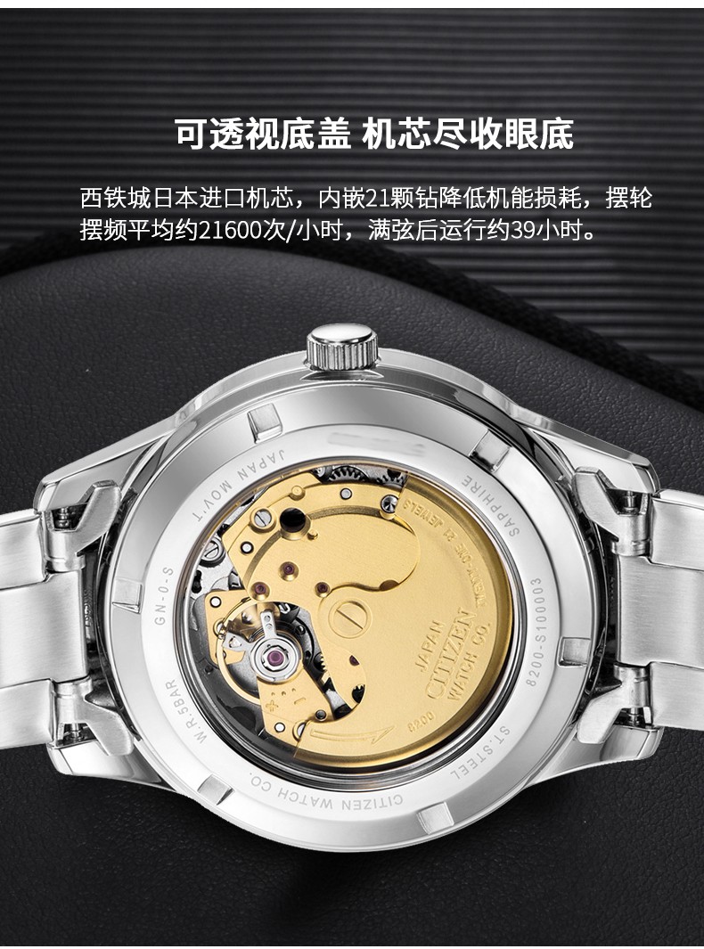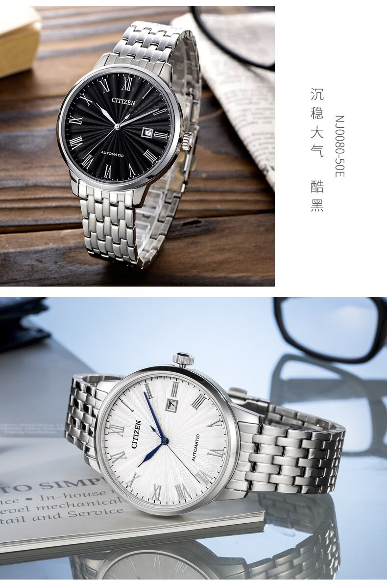 CITIZEN watch men's automatic mechanical watch fashion casual simple waterproof steel band business watch Valentine's Day gift for boyfriend NJ0080-50A Japanese original