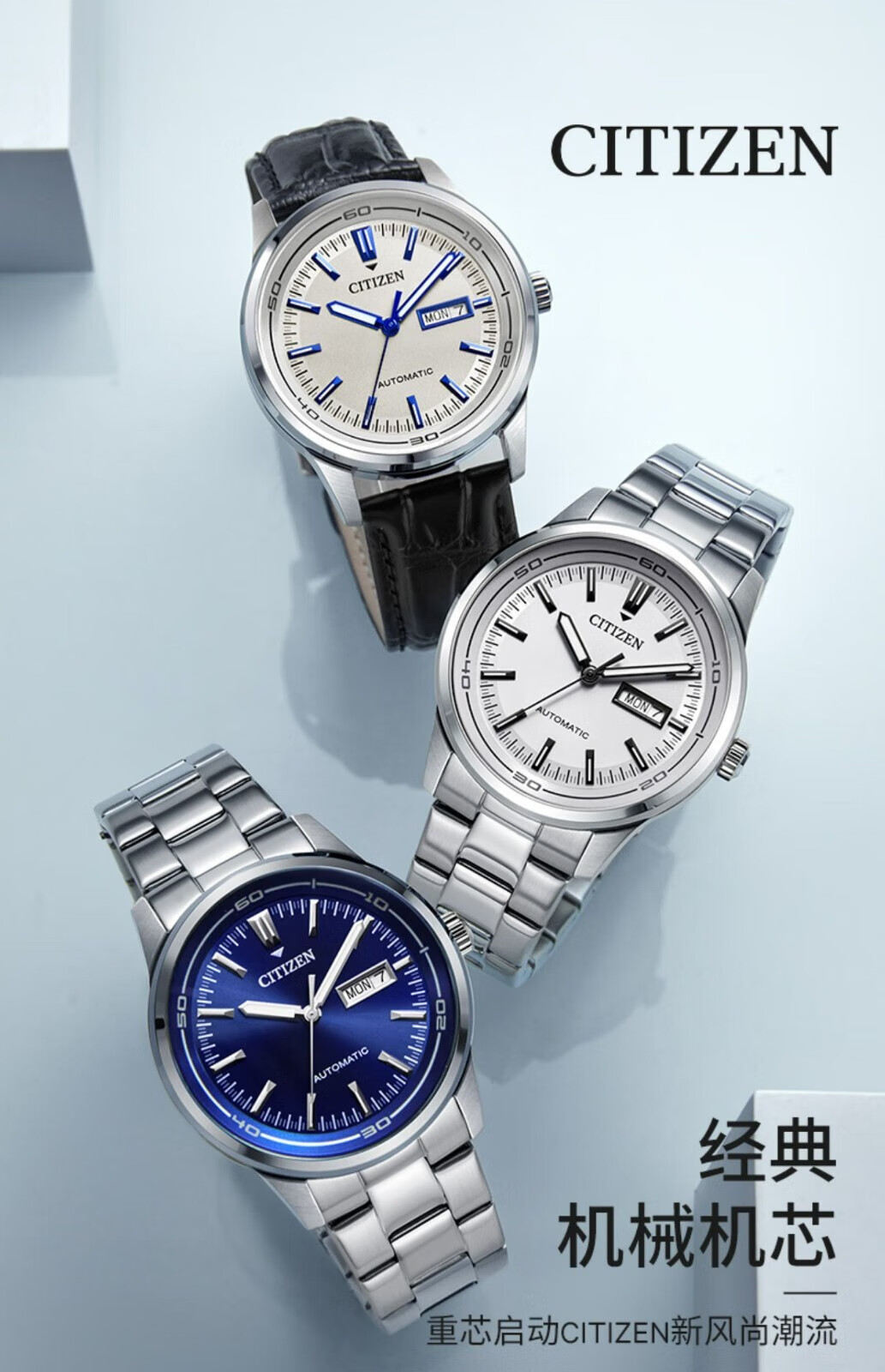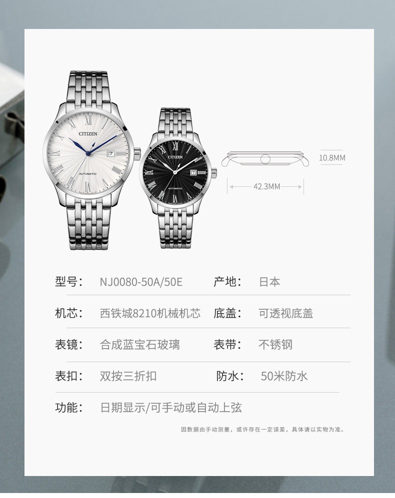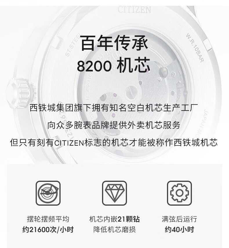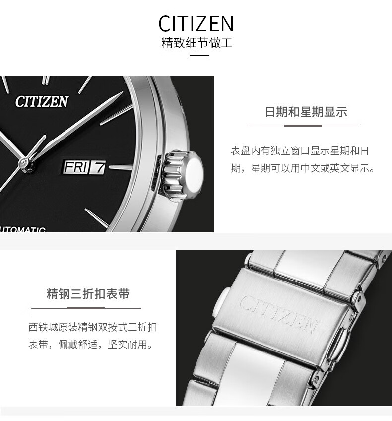 CITIZEN watch men's automatic mechanical watch fashion casual simple waterproof steel band business watch Valentine's Day gift for boyfriend NJ0080-50A Japanese original
