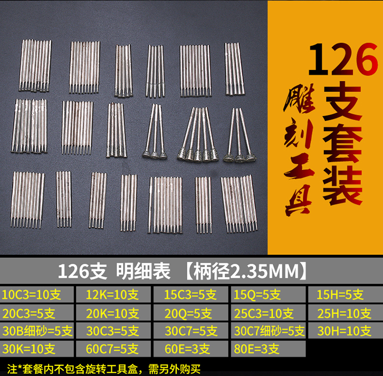 MOLITE electric emery grinding head jade carving tool set jade raw stone window peeling and polishing drill bit jade carving needle novice carving 80 pieces