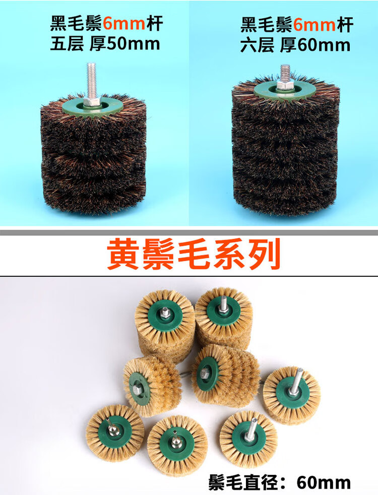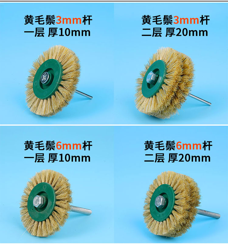 MOLITE Wenwan electric brush head small Rudraksha walnut polished bristle brush electric drill wild boar bristle brush wheel black bristle two-row brush 3mm rod