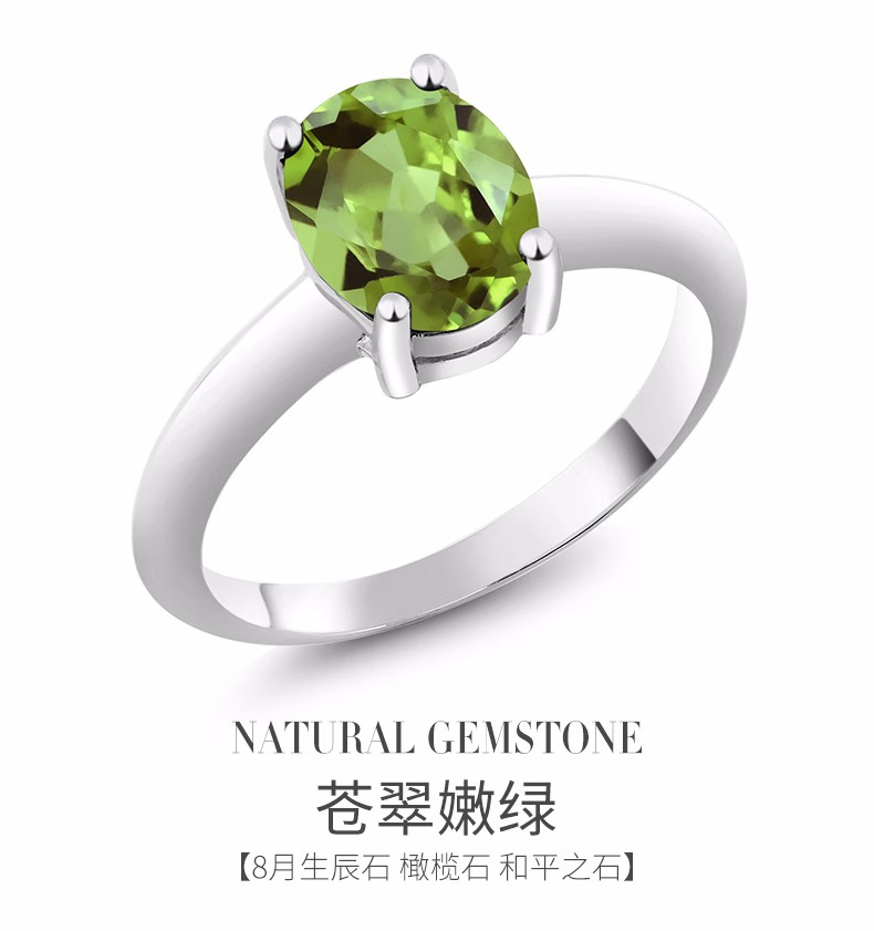 GEM STONE KING 1.8 carat green peridot ring, single inlaid with 925 silver colored gemstones for women, a Valentine's Day gift for your girlfriend, US No. 8