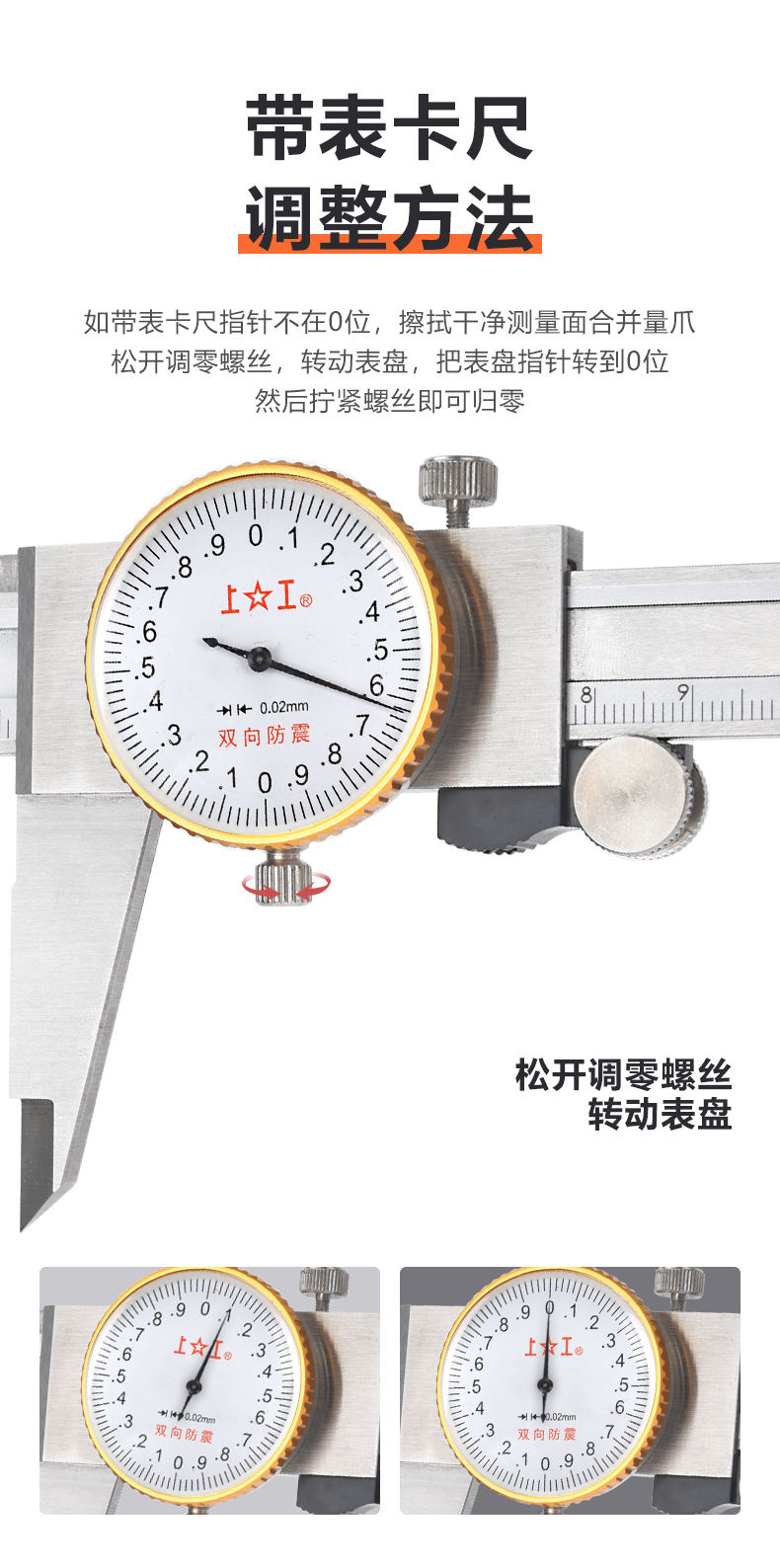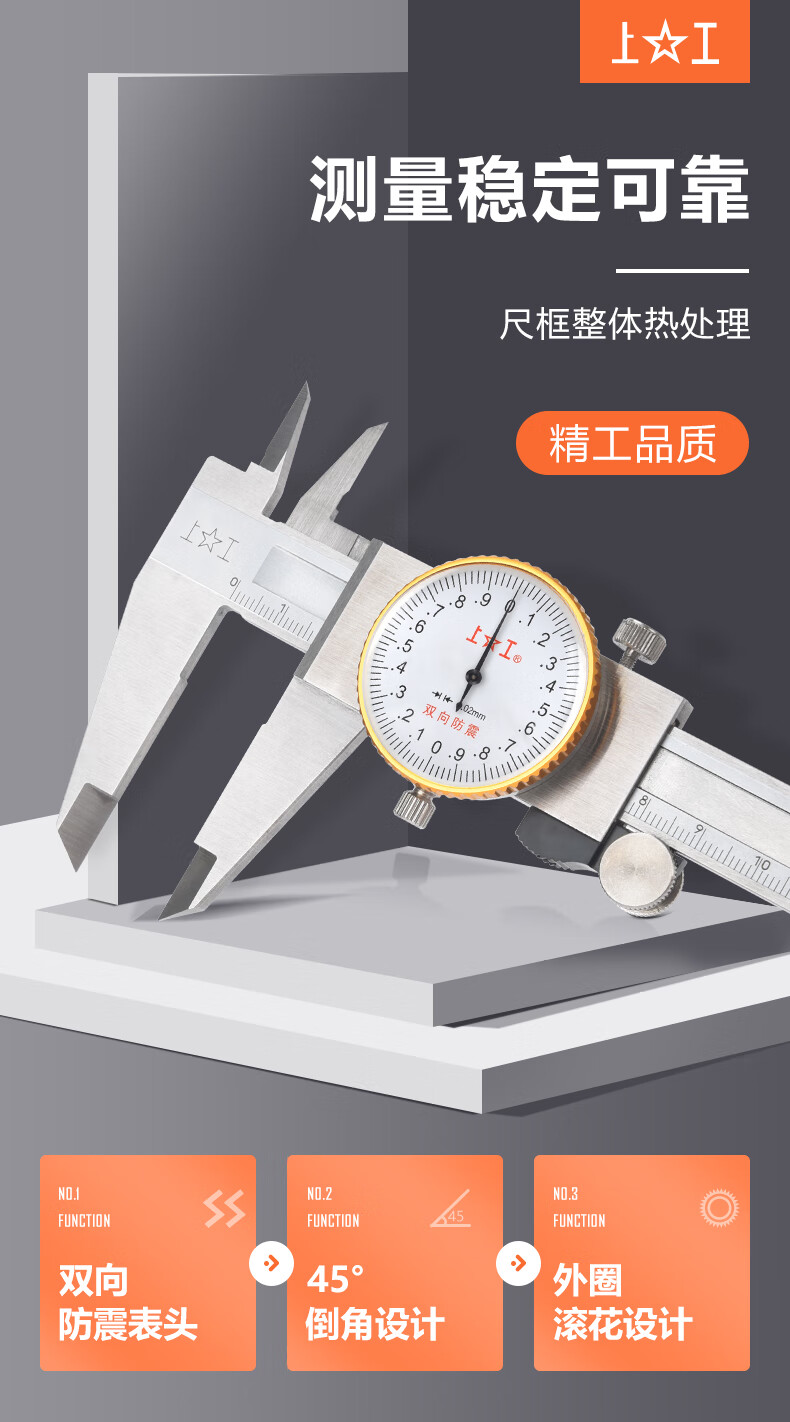 Shanggong stainless steel dial caliper 0-200mm graduation value 0.01mm vernier caliper high precision dial caliper