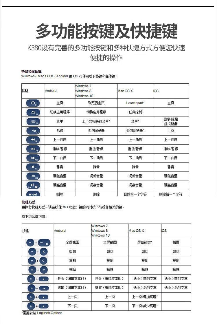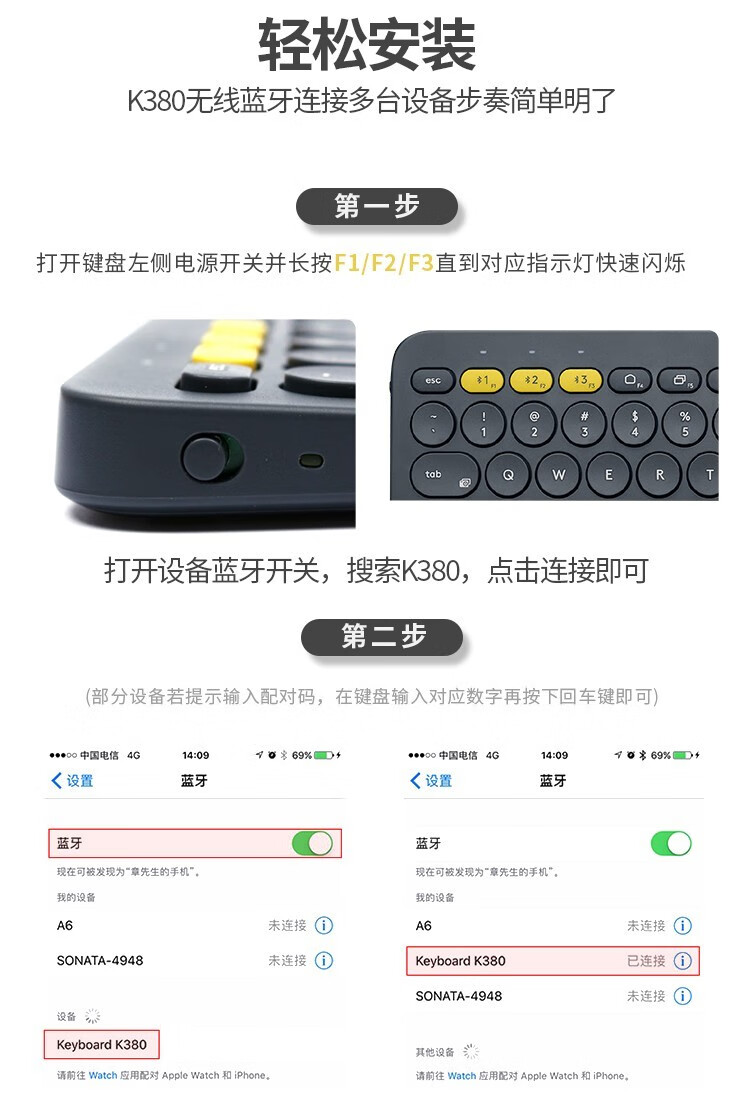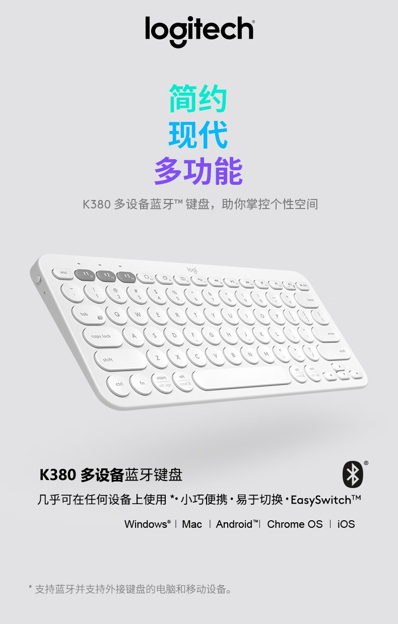 Logitech Fashion Series K380 Bluetooth Keyboard Wireless Keyboard Mac Notebook Tablet IPAD Computer Silent Keyboard Android Phone Multi-Device Ultra-Thin Portable Chocolate Keyboard K380 White
