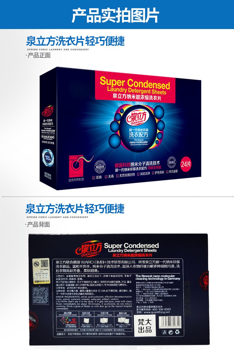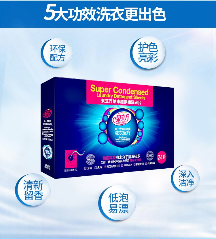 Quan Cube Laundry Tablets 24 Super Concentrated Laundry Bubble Paper Smooth Deep Cleansing Laundry Detergent Long-lasting Fragrance Good Rinse