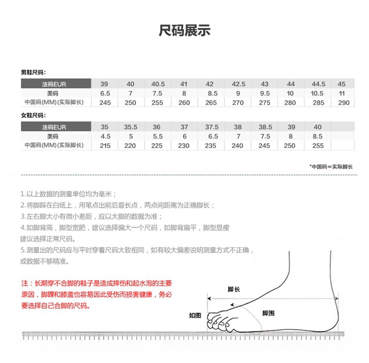 China (cm) 36 - 37 38 - 39 40 - 42 43 - 44 45 - 47