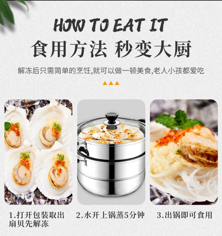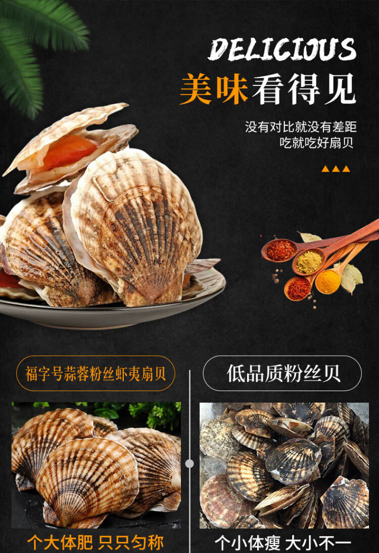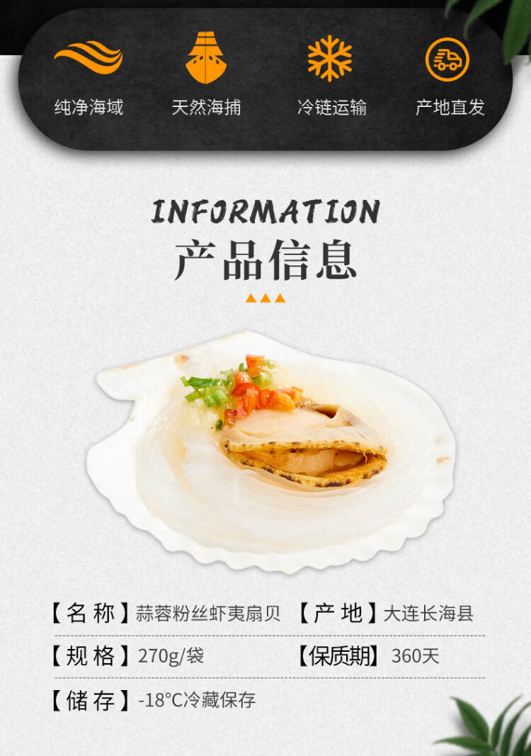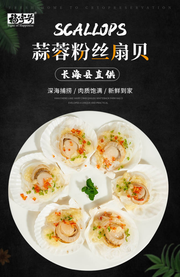 Fuzhao Frozen Garlic Vermicelli Ezo Large Scallops 6 pieces 270g gutted and sand-free barbecue deep-sea dining table