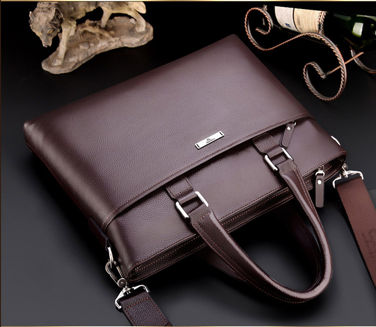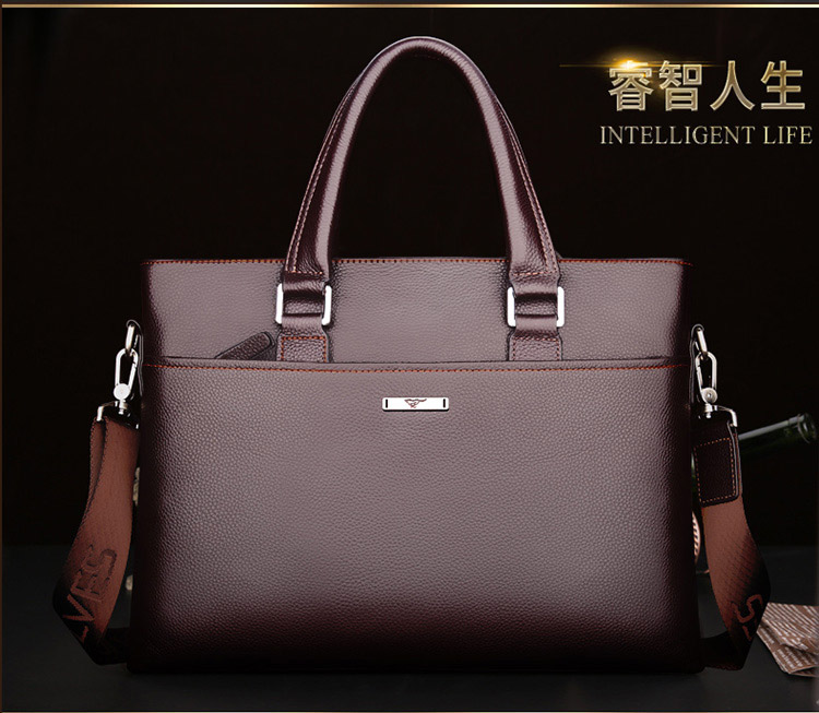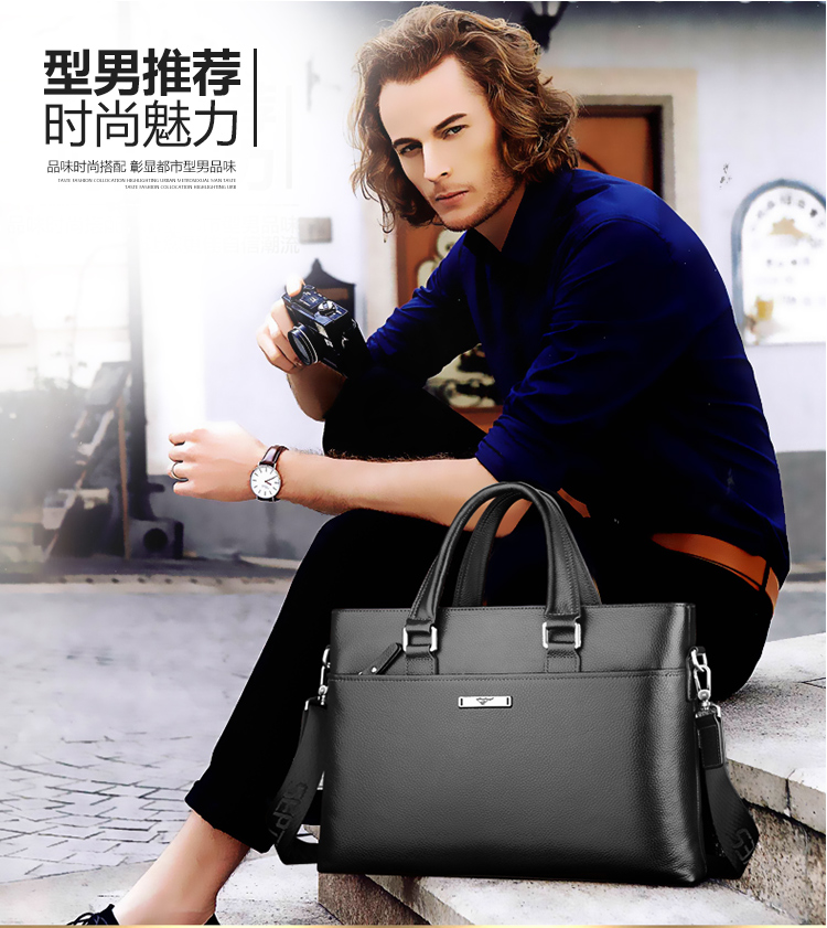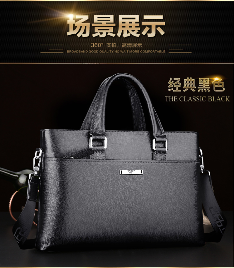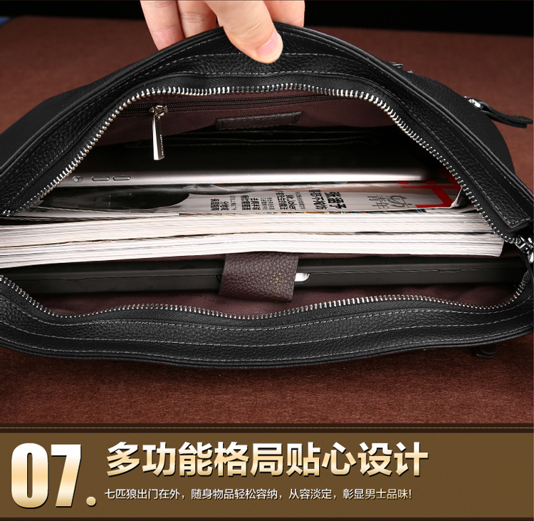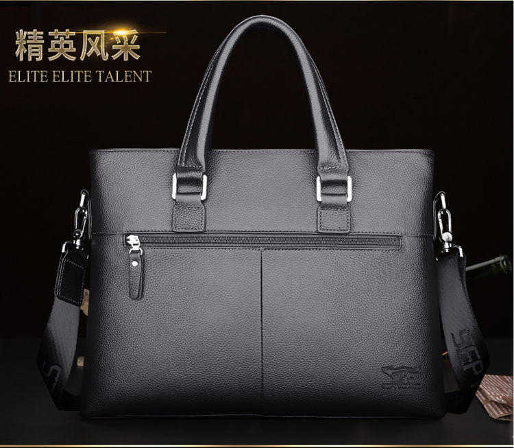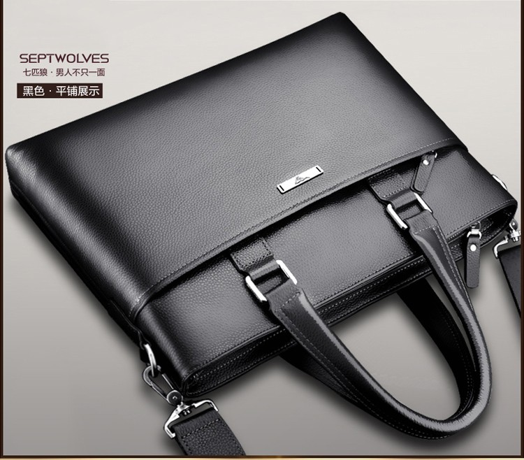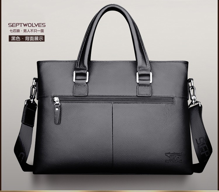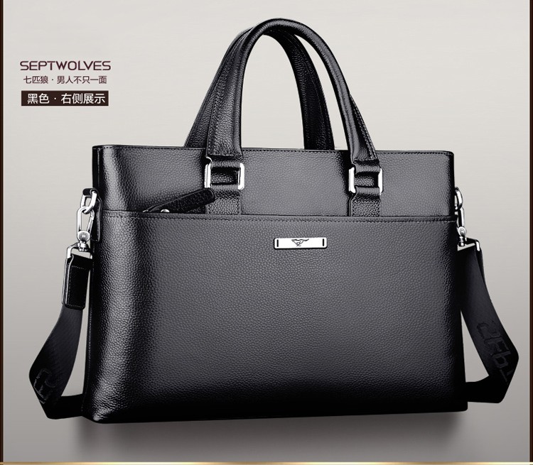 Septwolves Briefcase Men's Business Men's Bag First Layer Cowhide Handbag Crossbody Bag Shoulder Backpack Laptop Bag Black
