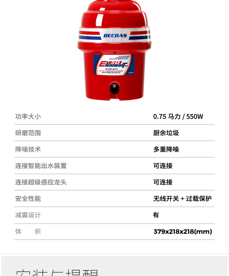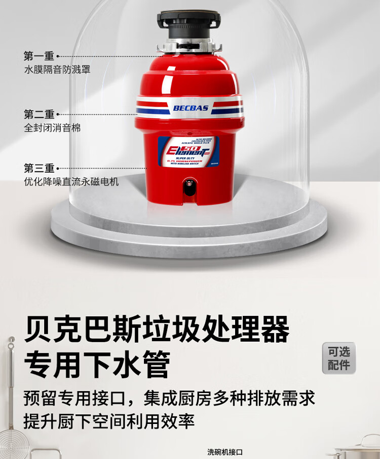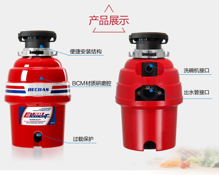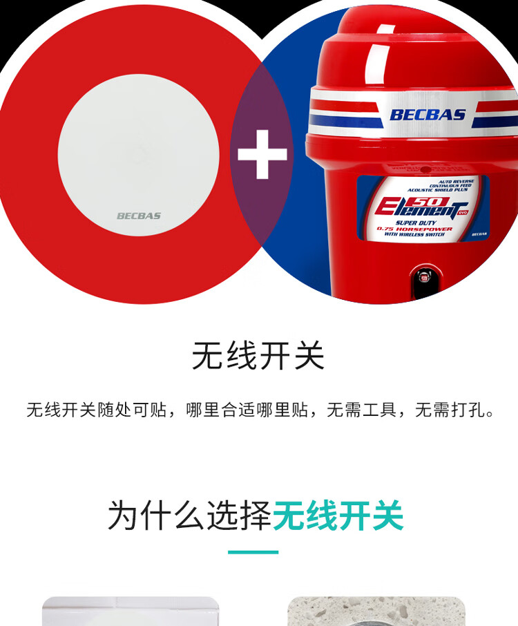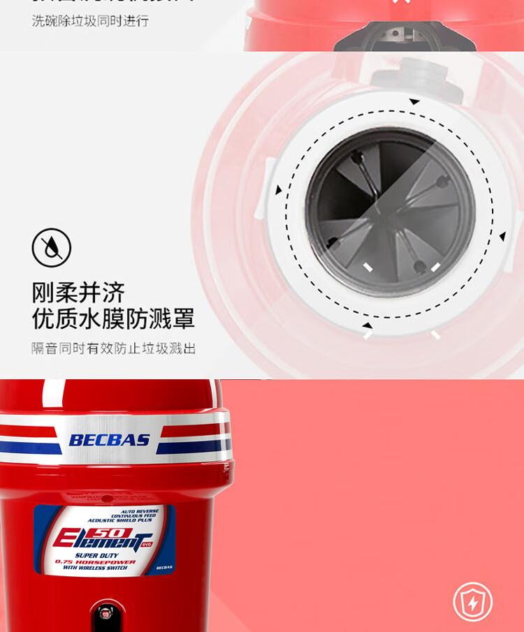 BECBAS garbage disposer food waste shredder wireless switch automatic reverse E50evo