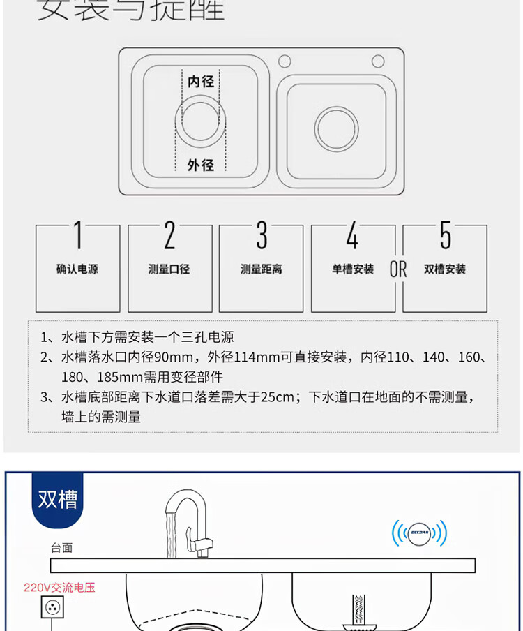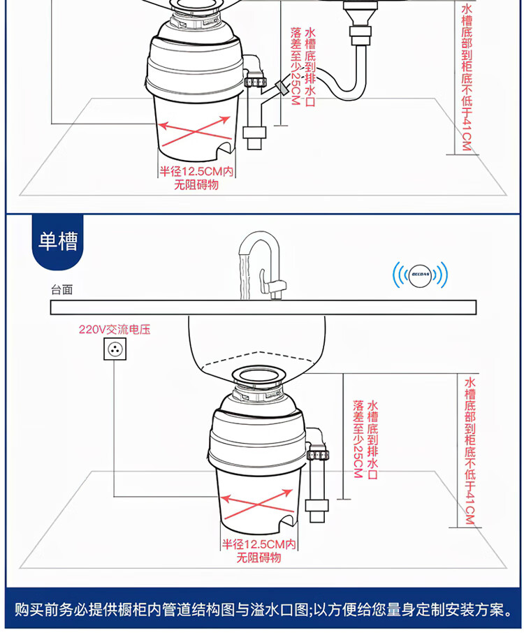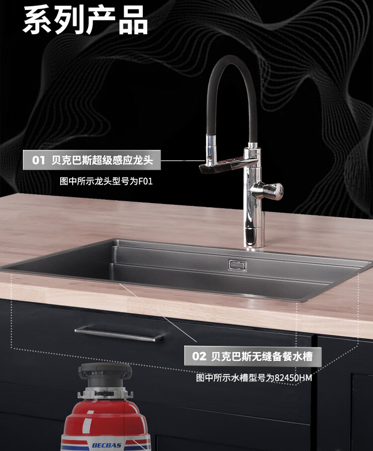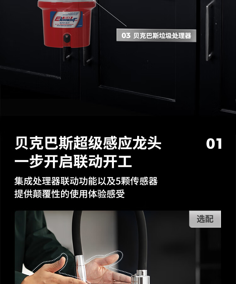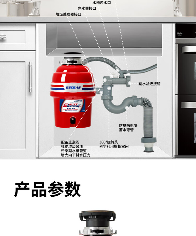 BECBAS garbage disposer food waste shredder wireless switch automatic reverse E50evo
