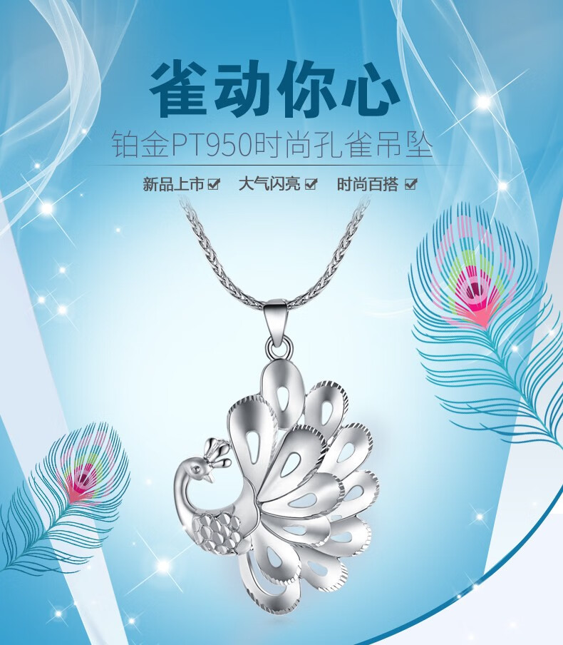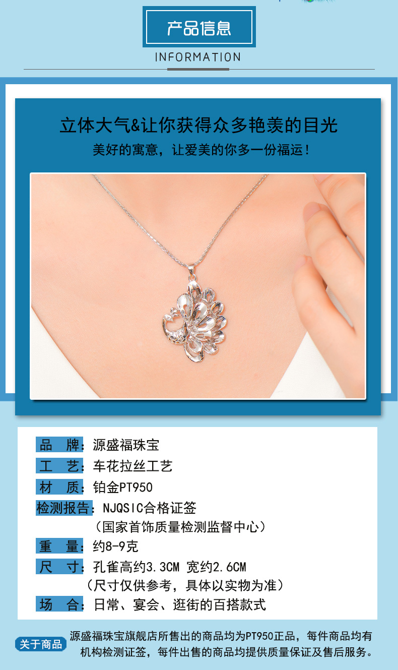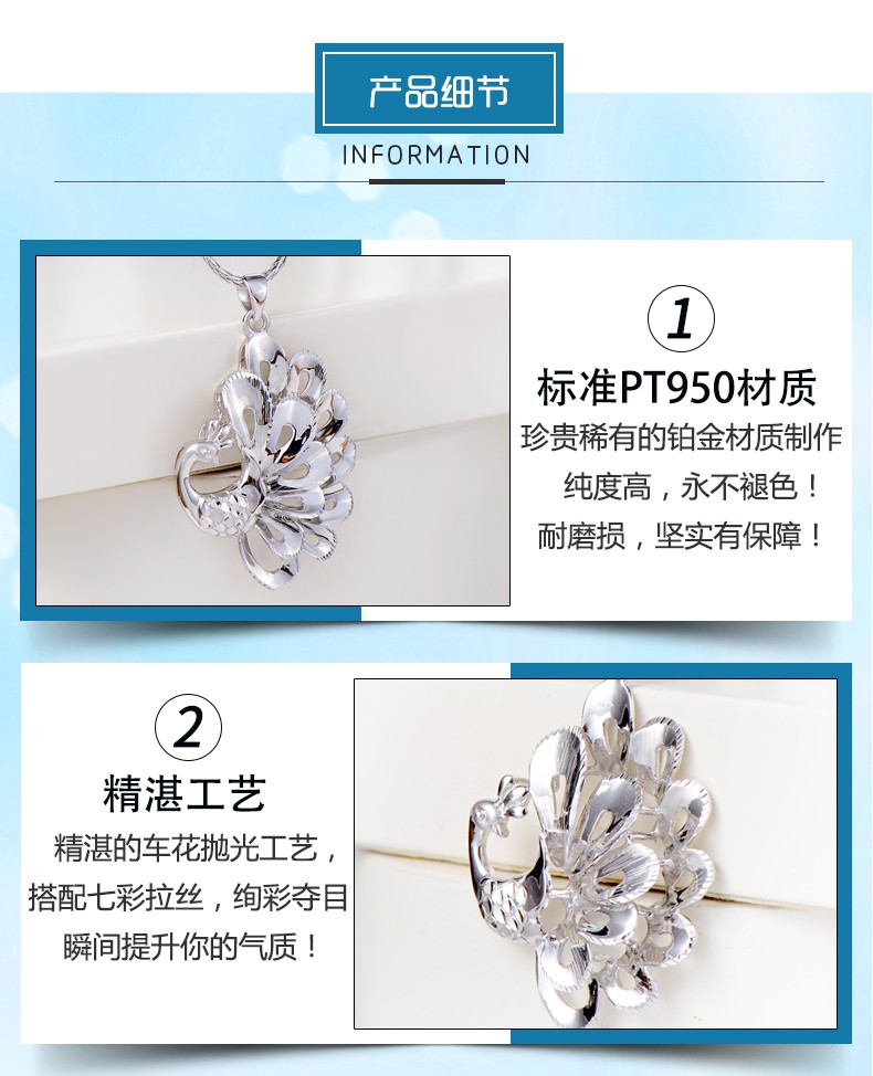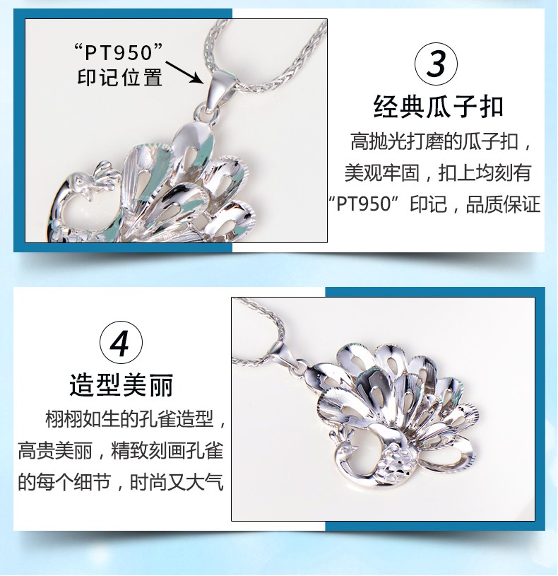 Yuan Shengfu's new PT950 high-quality fashionable peacock platinum pendant, fashionable and elegant platinum necklace pendant for women, 7.89 grams (excluding necklace)