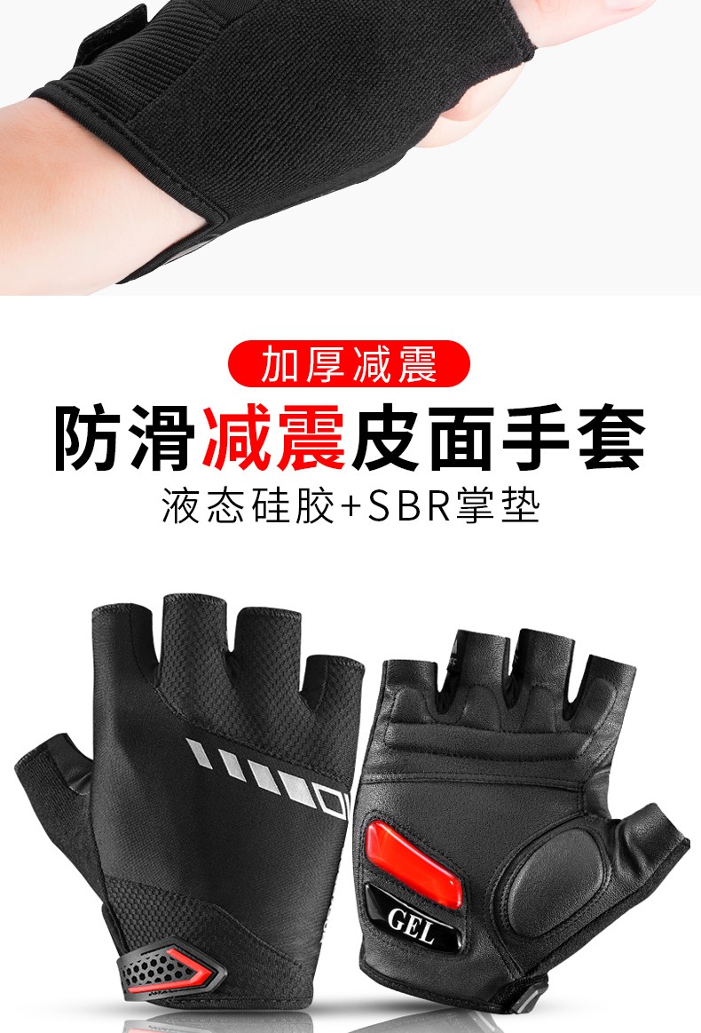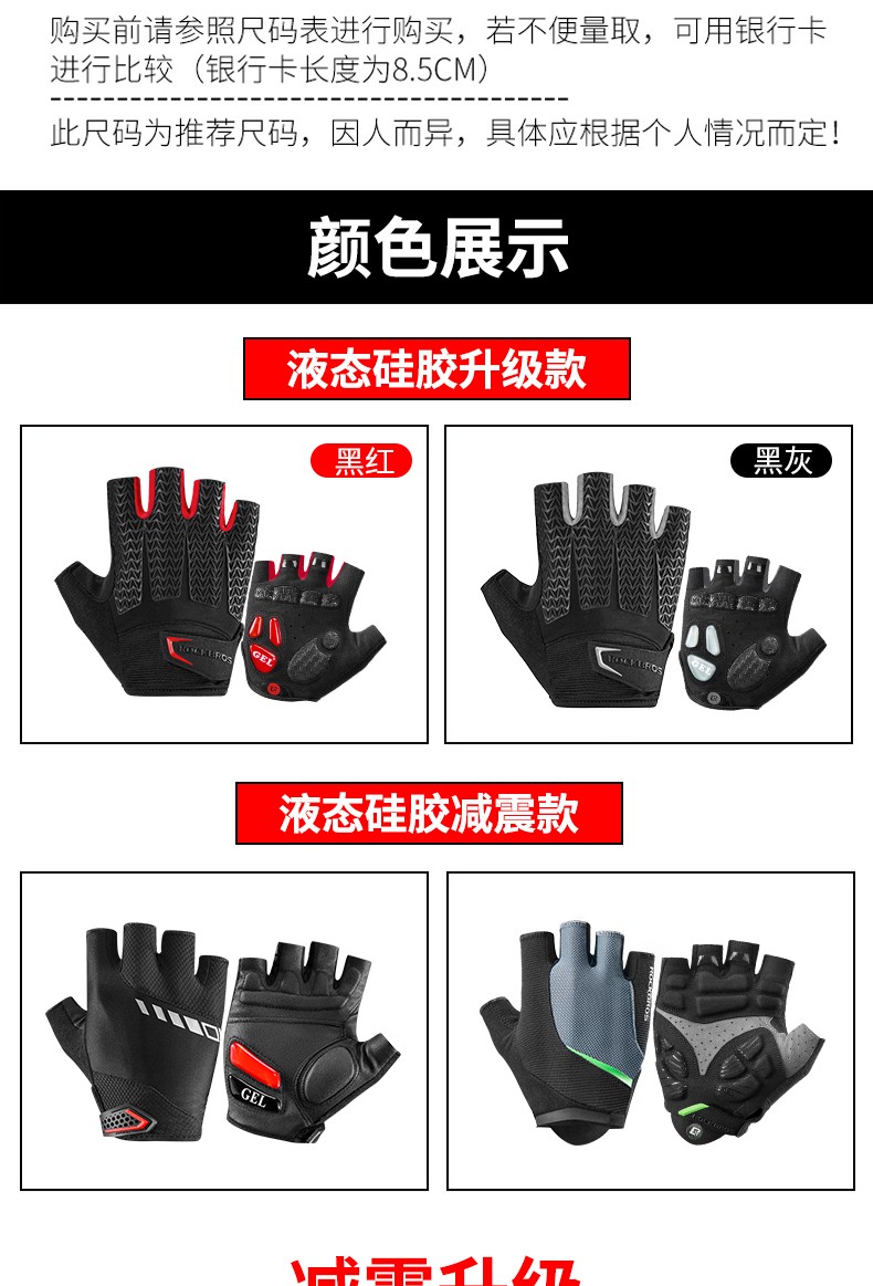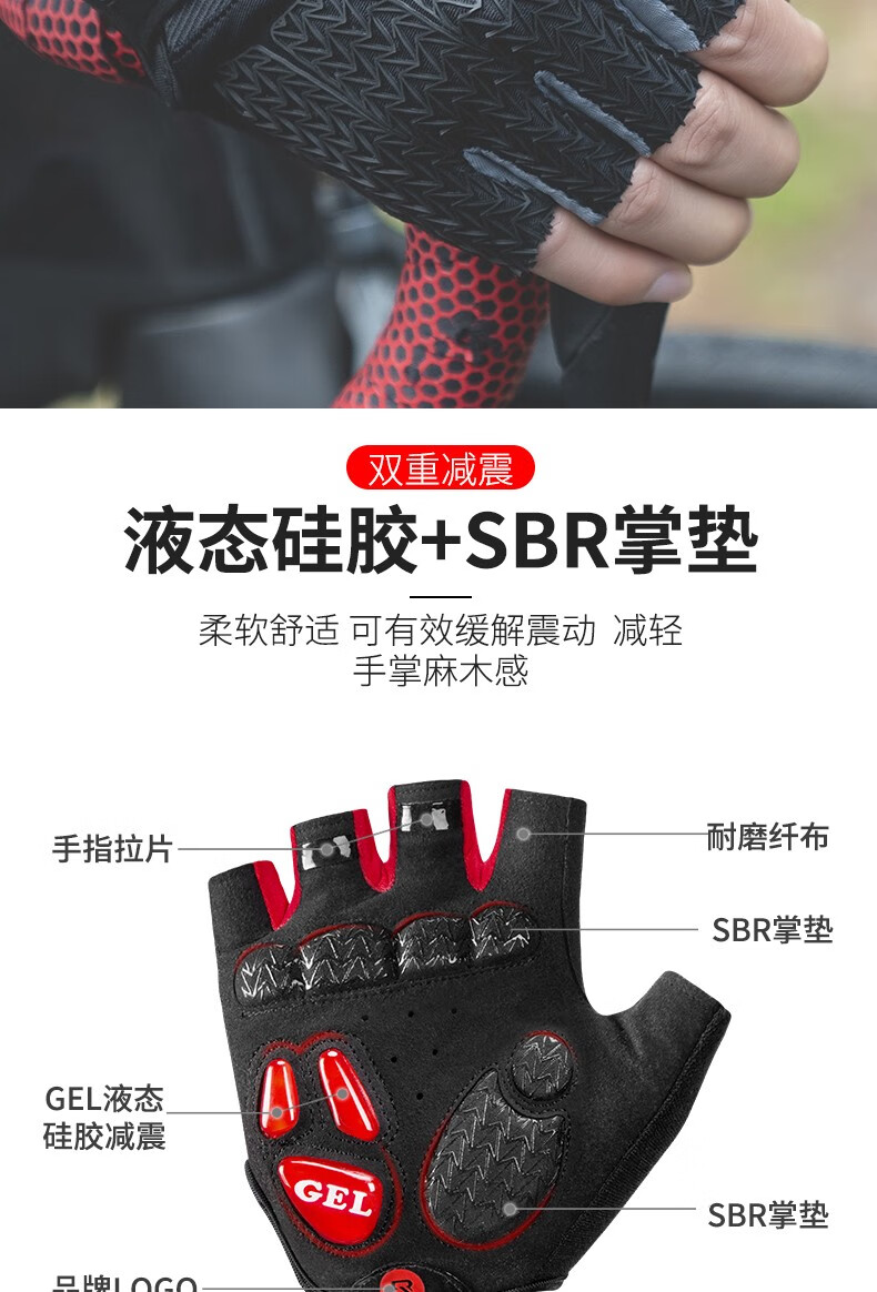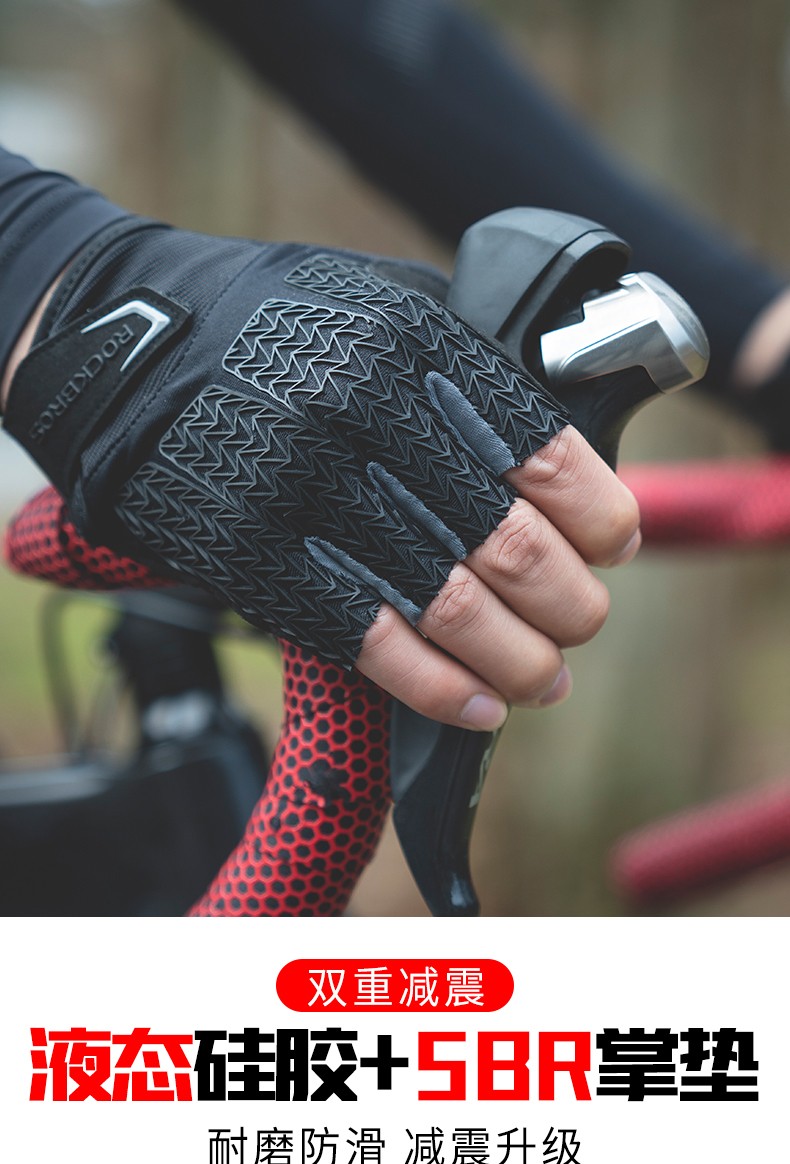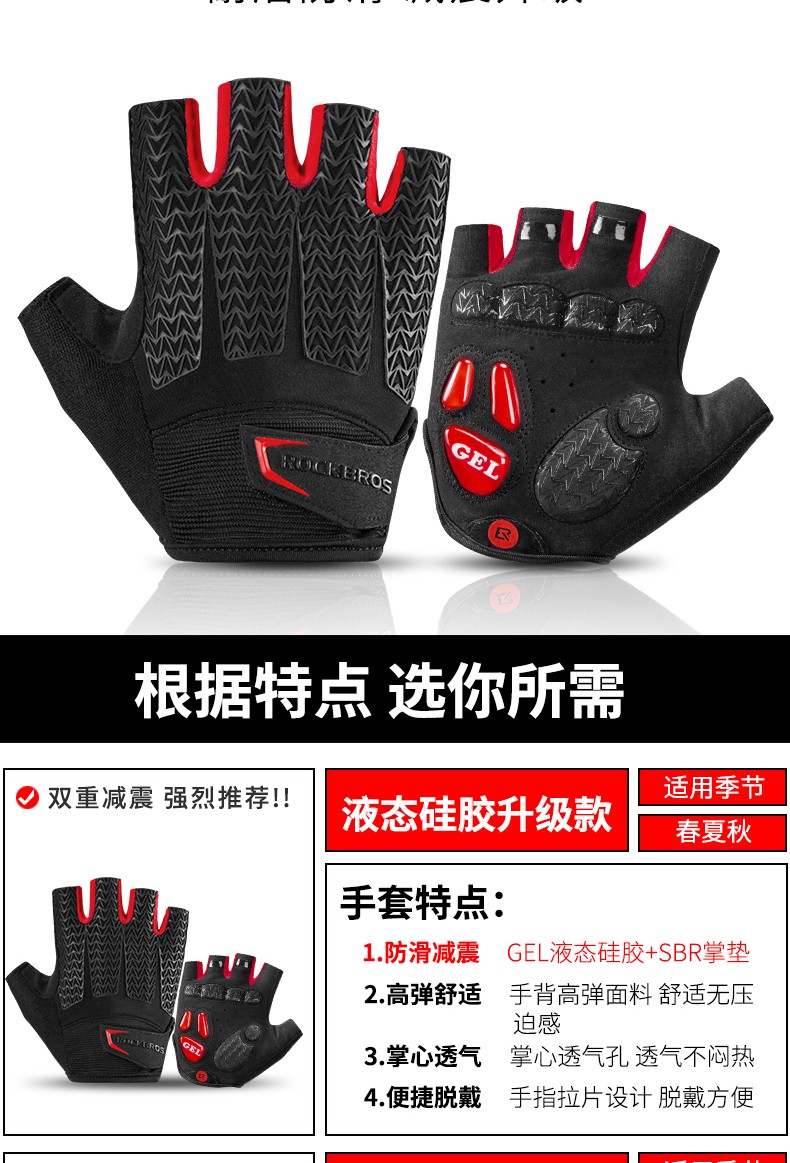 ROCKBROS Cycling Gloves Thickened Silicone Shock Absorption Spring and Summer Sports Fitness Cycling Gloves Half Finger Men S169 Black and Red SBR+GEL Dual Shock Absorption Upgrade L