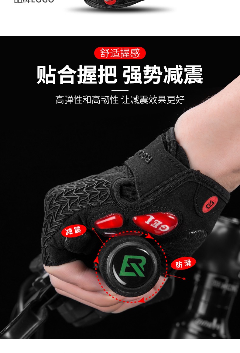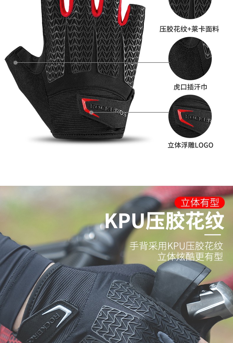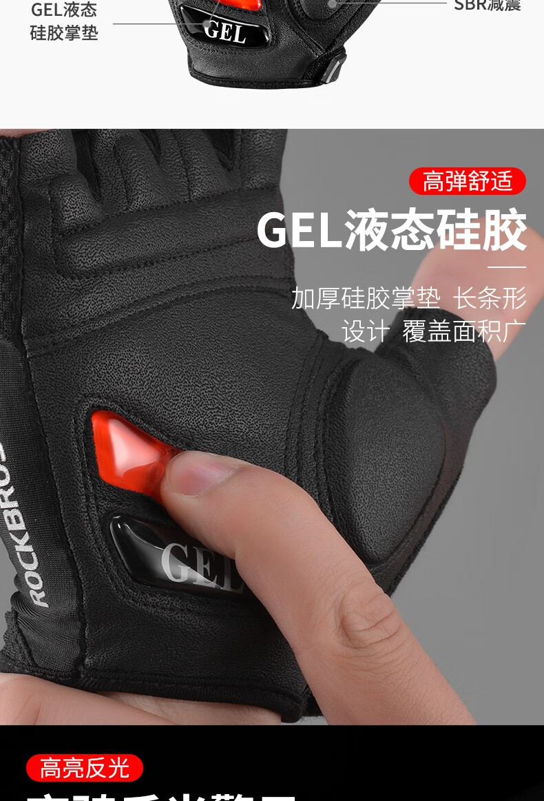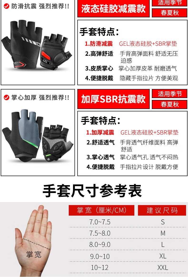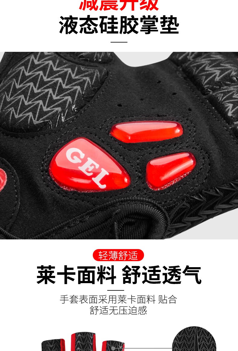 ROCKBROS Cycling Gloves Thickened Silicone Shock Absorption Spring and Summer Sports Fitness Cycling Gloves Half Finger Men S169 Black and Red SBR+GEL Dual Shock Absorption Upgrade L