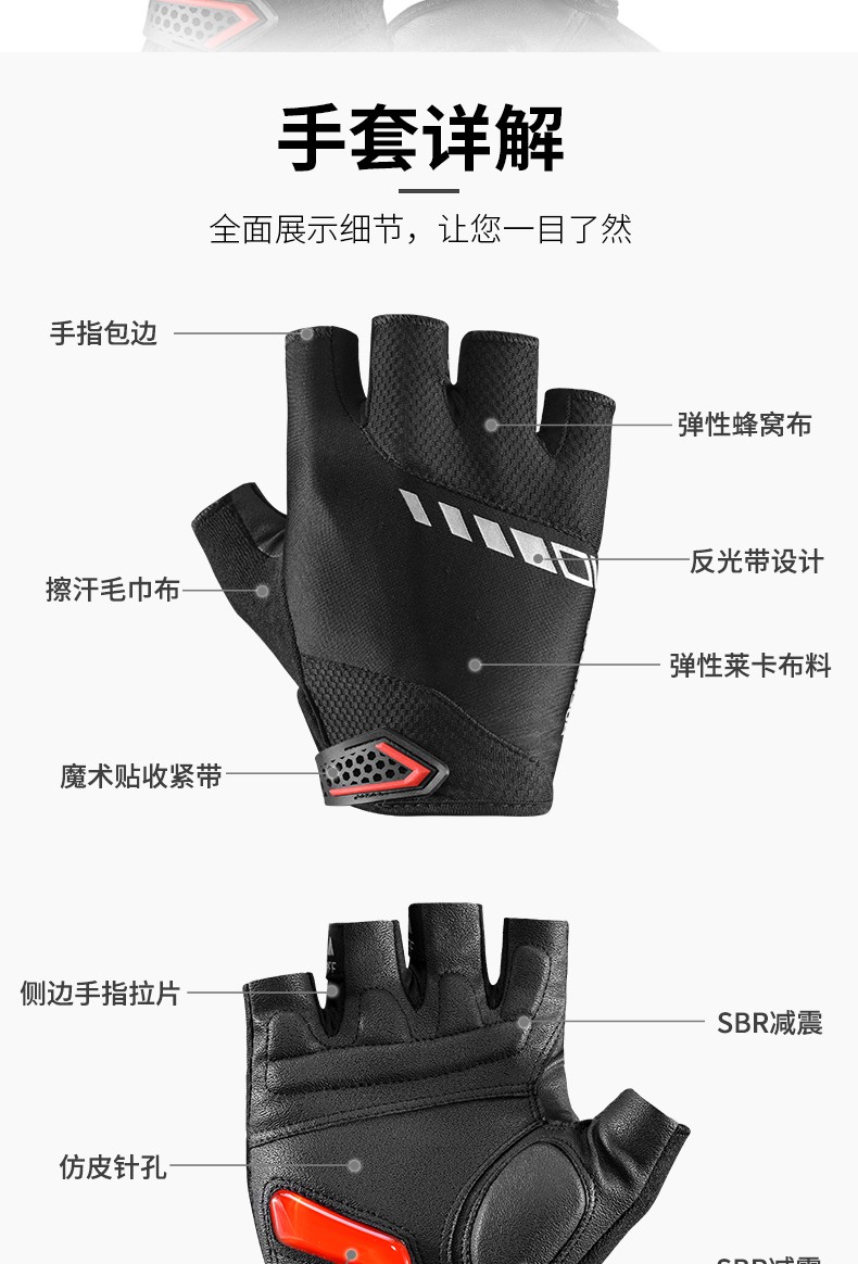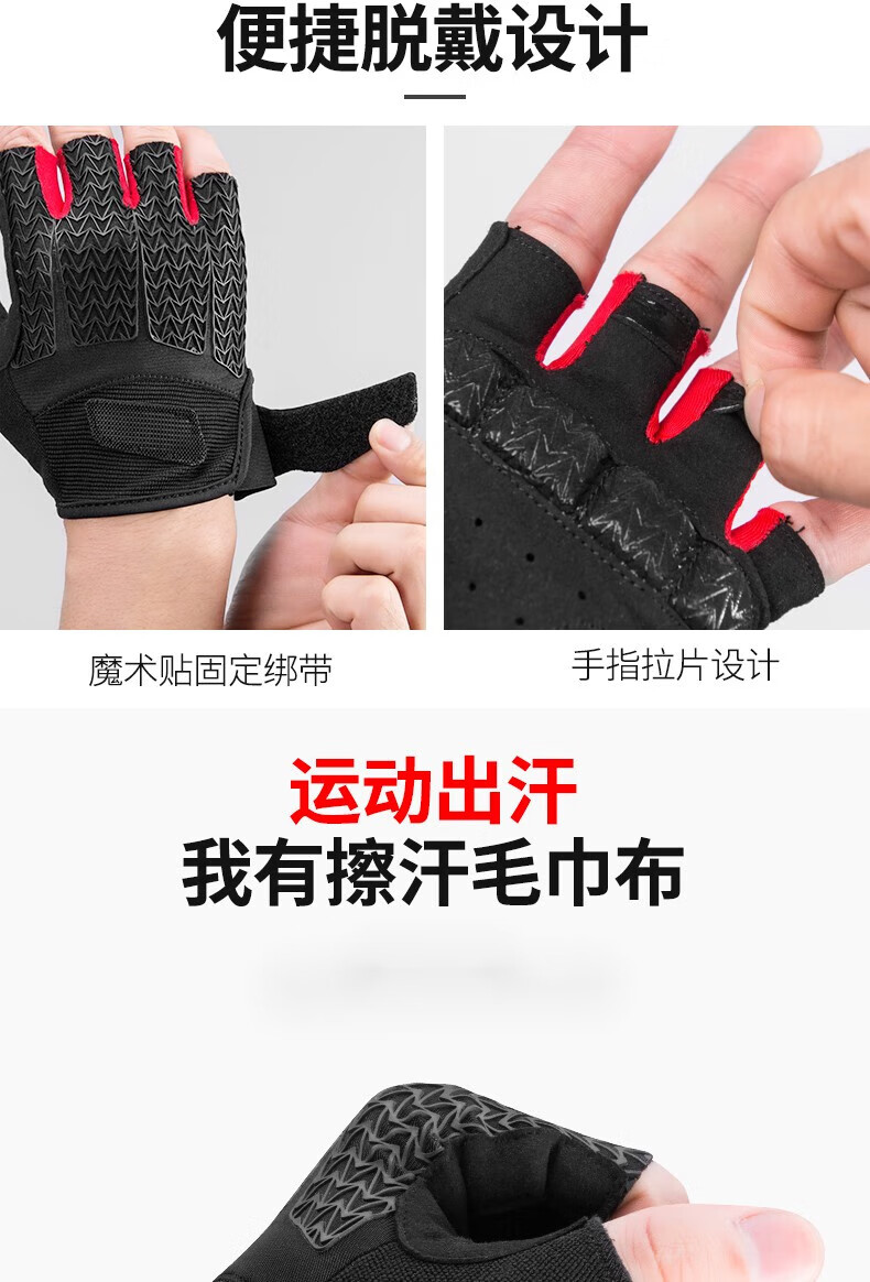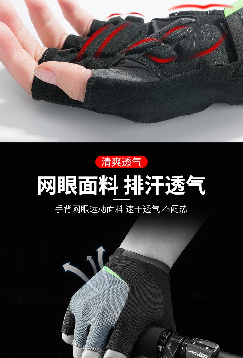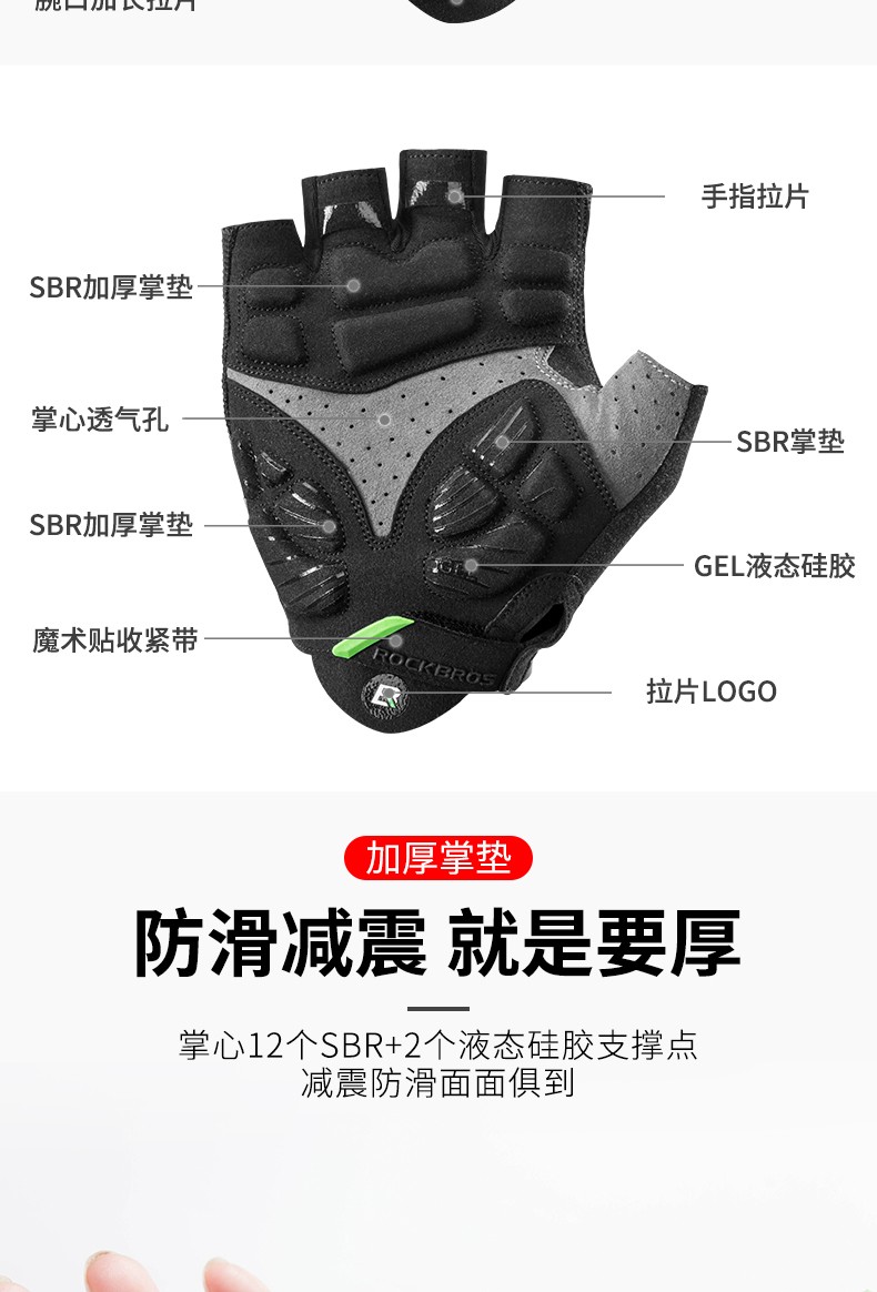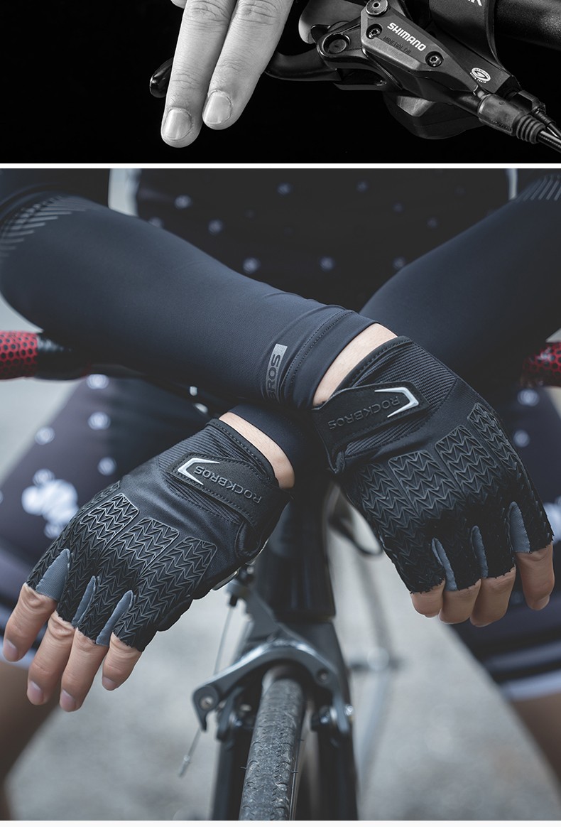 ROCKBROS Cycling Gloves Thickened Silicone Shock Absorption Spring and Summer Sports Fitness Cycling Gloves Half Finger Men S169 Black and Red SBR+GEL Dual Shock Absorption Upgrade L
