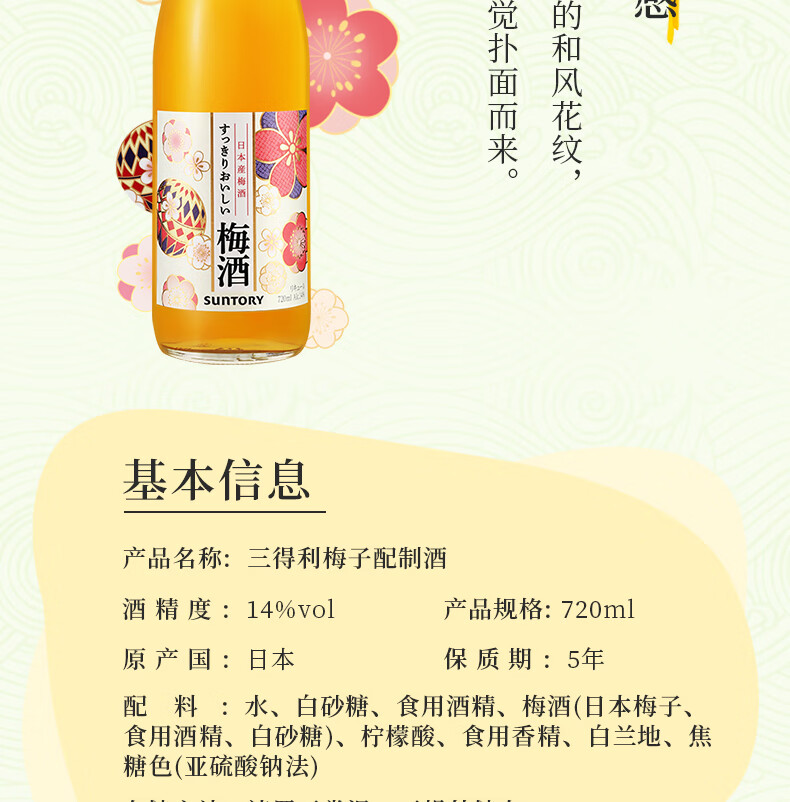 Suntory Fruit Wine Plum Wine Plum Wine Green Plum Wine 720ml 14% Bottled