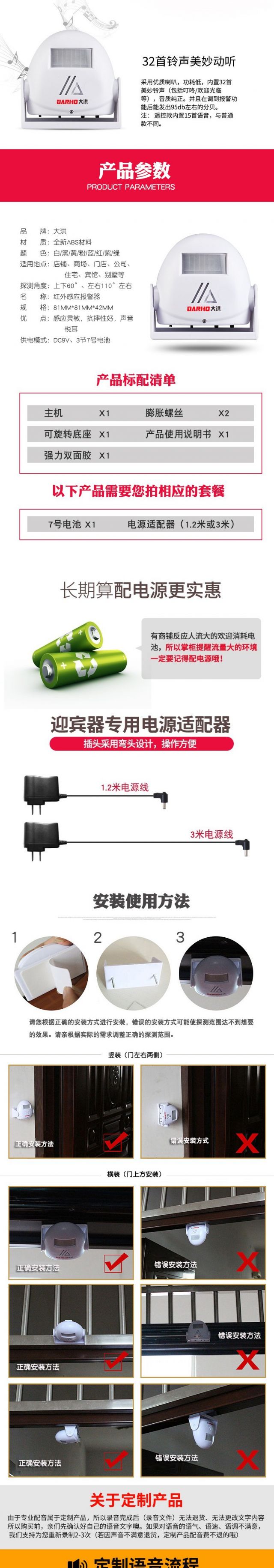 Dahong Welcome to Sensor Doorbell Store Charging Sensor Doorbell Welcome Home Alarm White Remote Control Model Free Battery