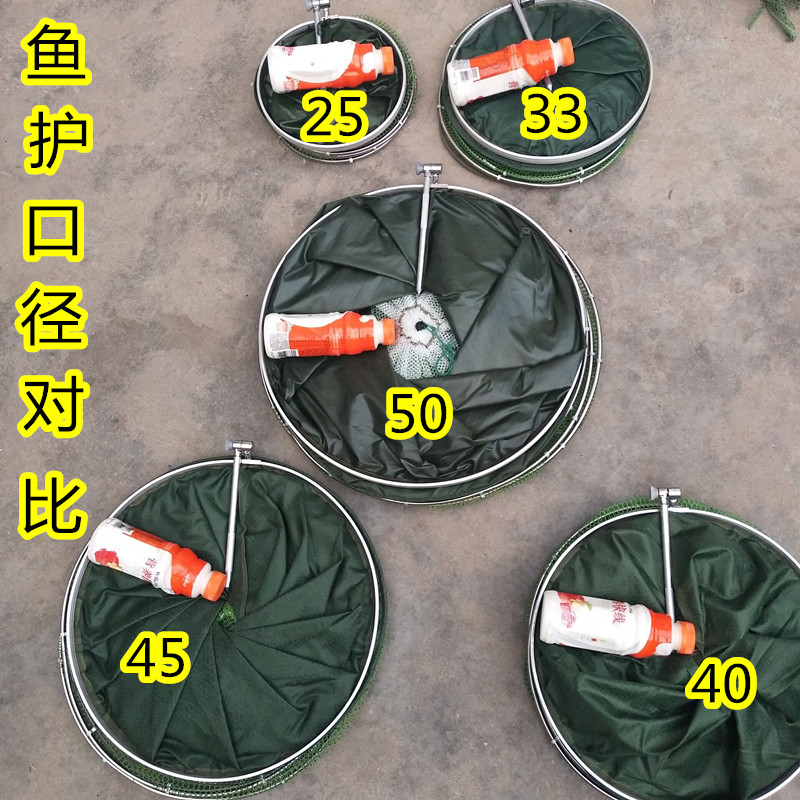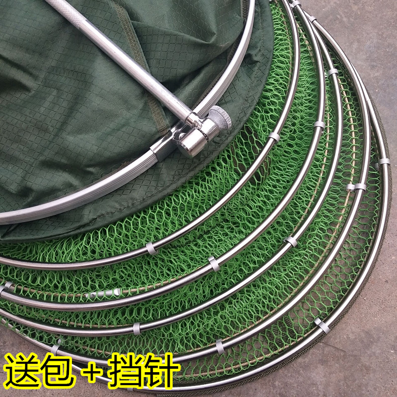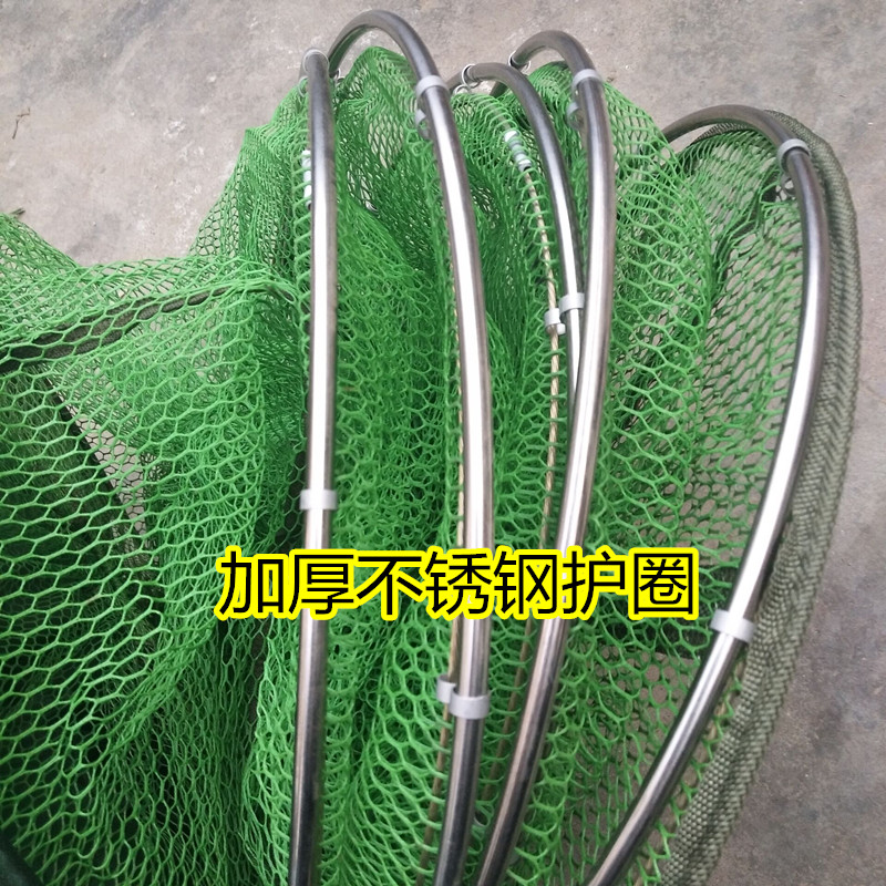 Jiang Muxue rubberized anti-hanging quick-drying fish protection stainless steel double-circle universal positioning fishing protection folding fishing net fishing net pocket 40 diameter 2 meters package delivery needle