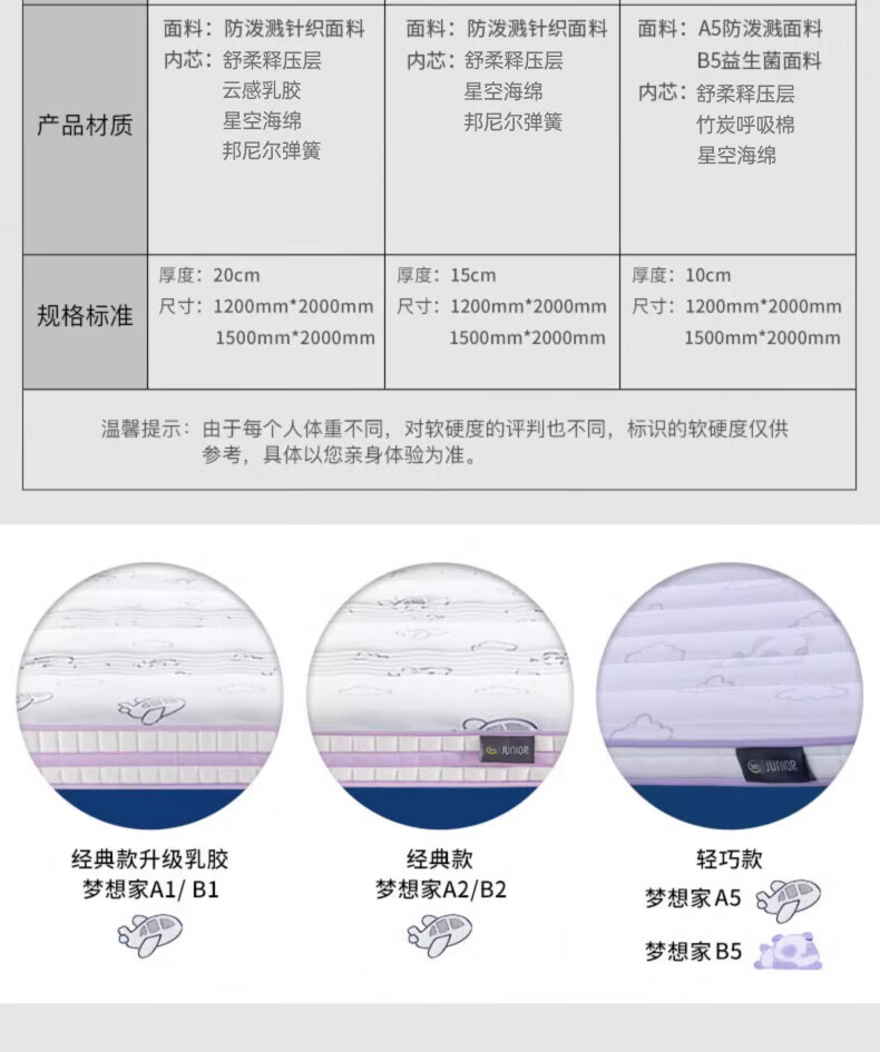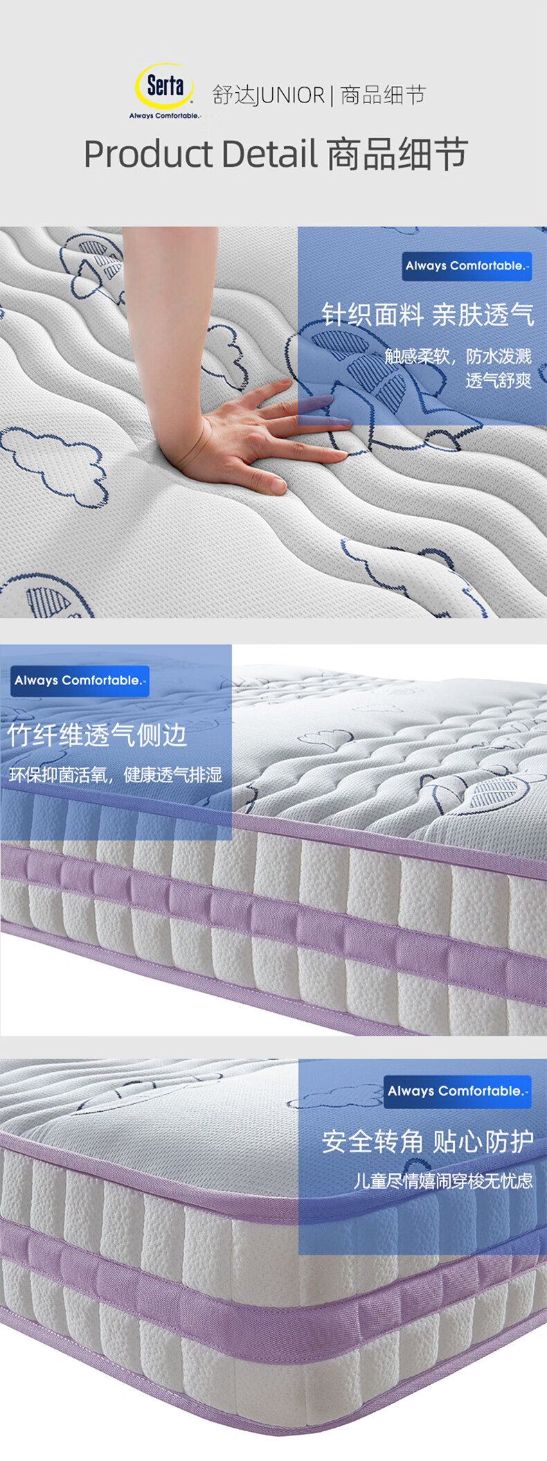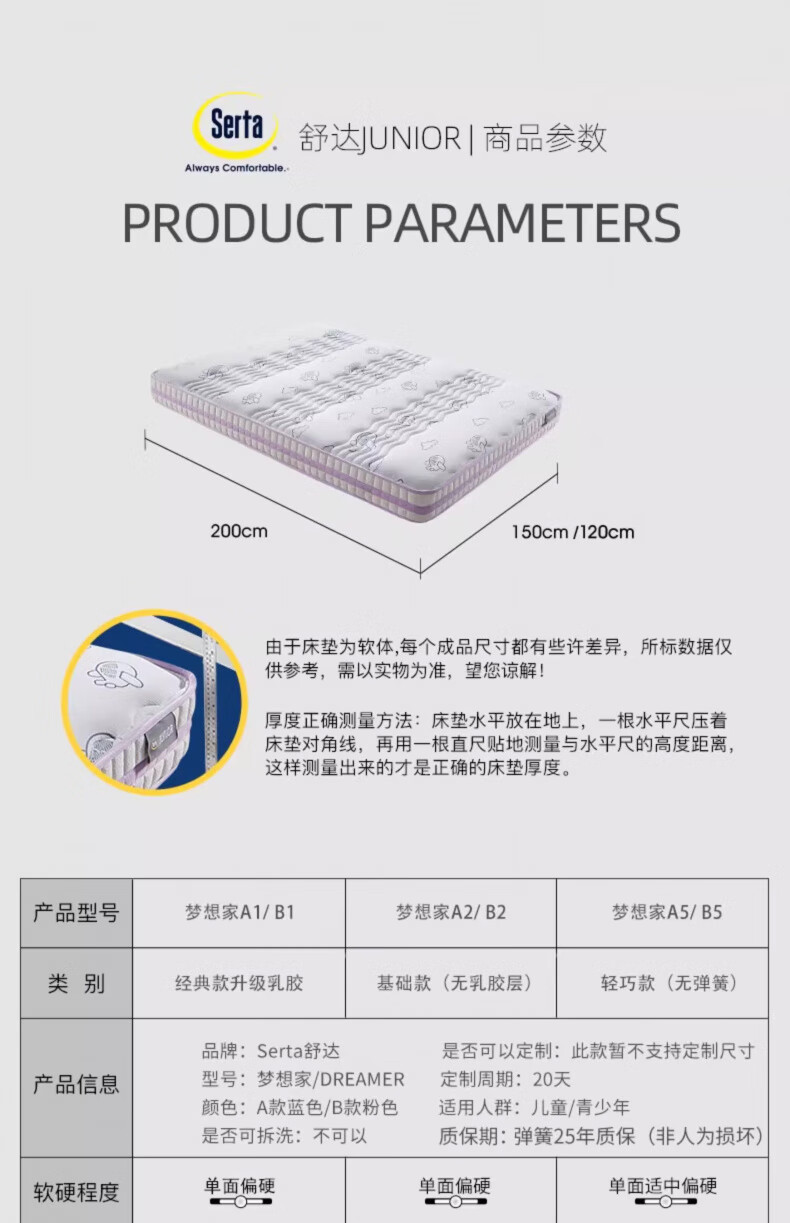 Serta children's mattress, teenagers' firm spine-protecting latex mattress, Bonnier spring mattress, customizable home mattress, Dreamer A1 blue (including latex, 20cm) 1.5x2 meters