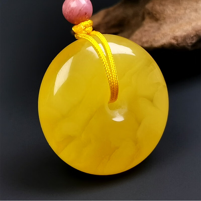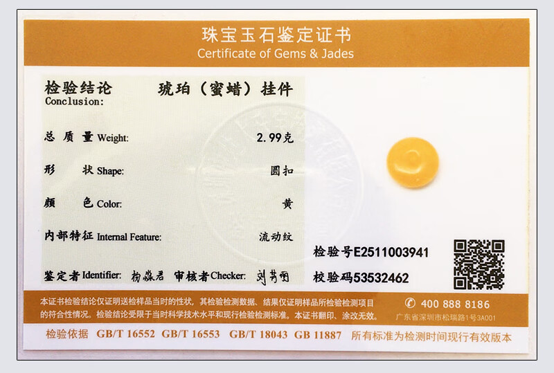 Amber School, one object, one picture, one certificate, beeswax pendant safety buckle, natural amber necklace for men and women, chicken oil yellow, no cracks, pendant 2.99 g 22*9 mm