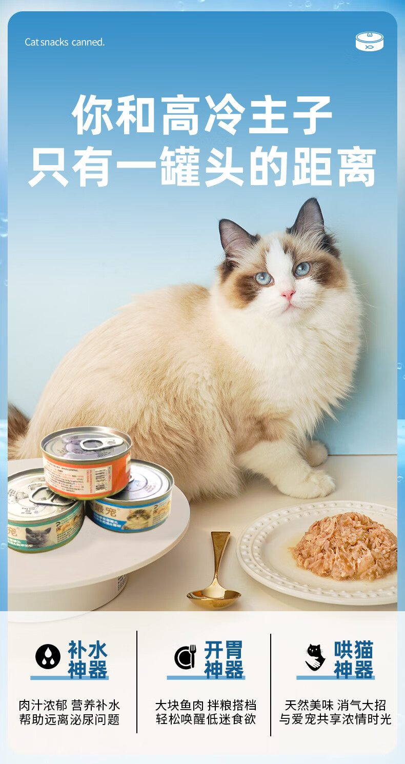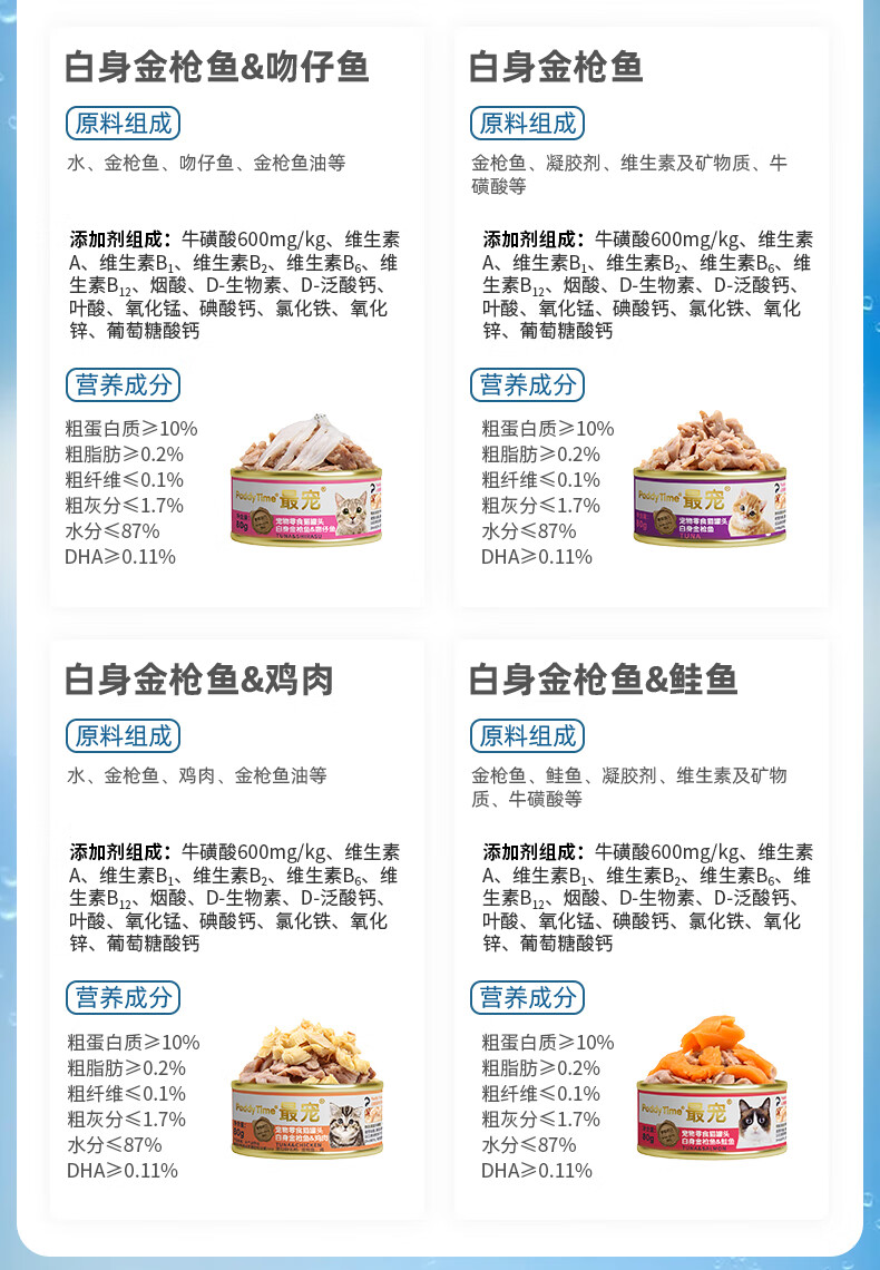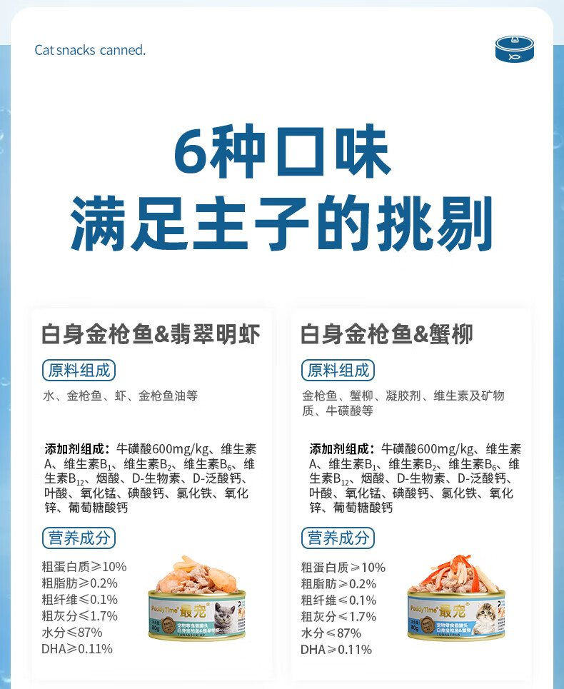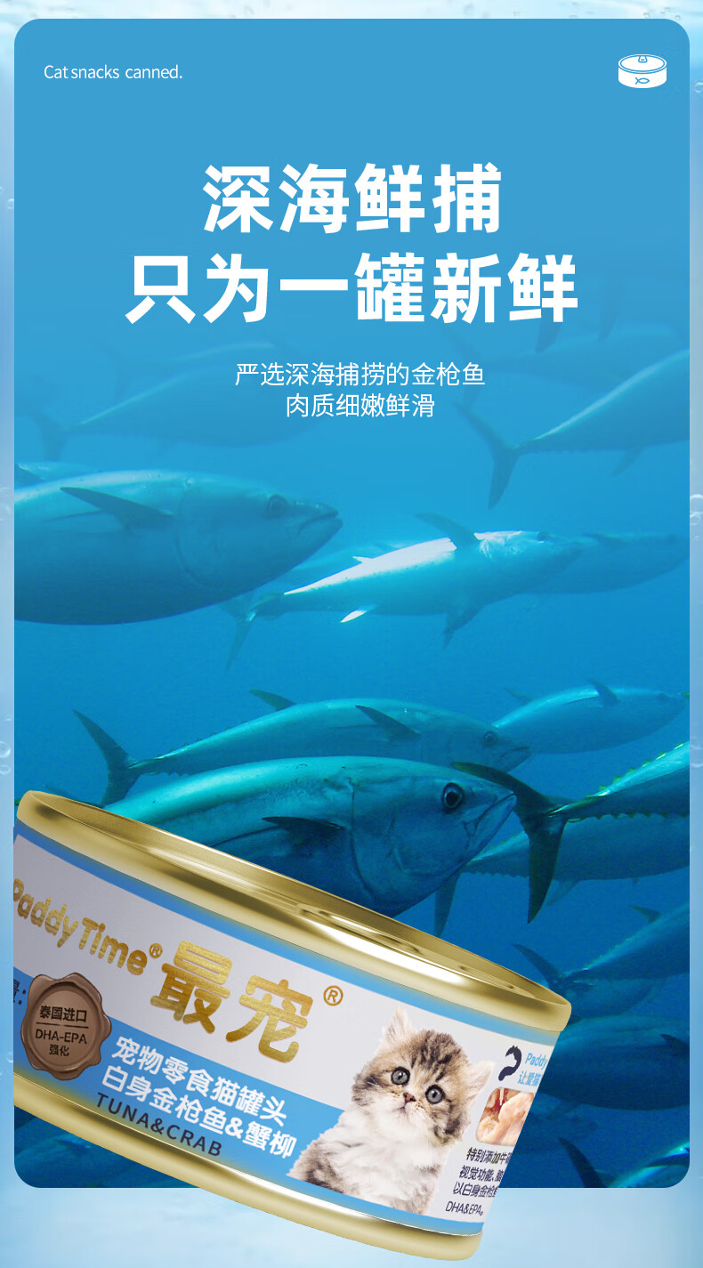 Paddy Time canned cat cans imported from Thailand, canned tuna, chicken, prawns, snack cans, wet food for cats and kittens, 24 cans, whole box, multi-flavor mixed package, 80g*24 cans
