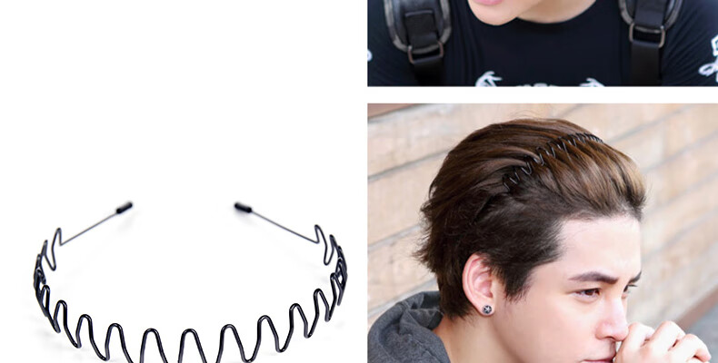 Onizi Men's Hairband Personalized Trendy Men's Back Hair Invisible Hairpin Hair Accessory Sports Face Wash Women's Headwear Pressed Hair Headband Headband 6mm Thickened Wavy Hairband