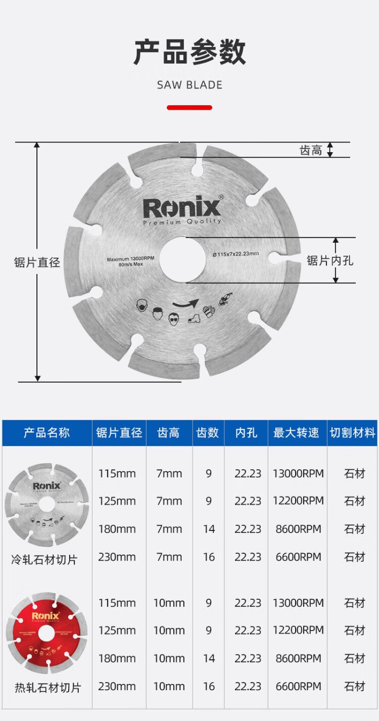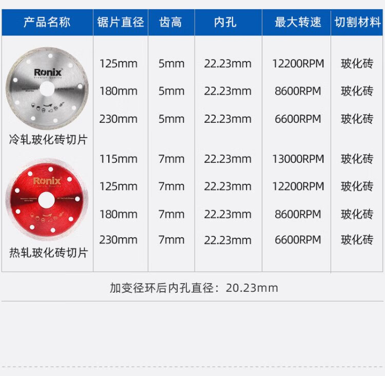 Ronix German diamond saw blade marble sheet tile marble stone cutting blade saw blade slicing stone angle grinder stone slicing 125 variable diameter 22.23/20