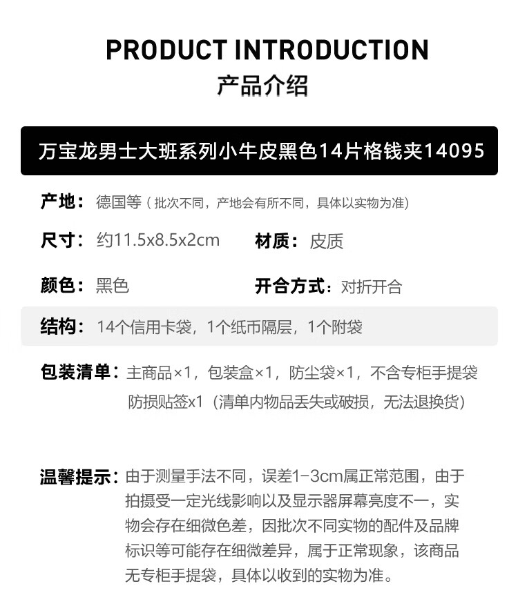Montblanc MONTBLANC Men's Meisterstück Series Black 14-piece Wallet/Wallet 14095 Christmas Gift
