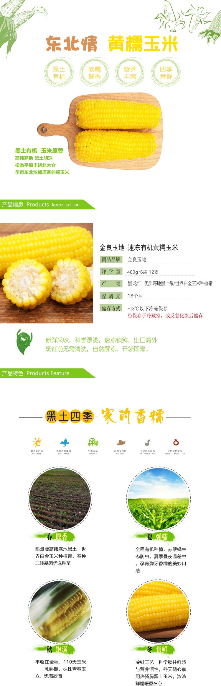 Jinliangyudi Heilongjiang organic quick-frozen yellow waxy corn 5.76Jin Jin equals 0.5kg 12 pieces New Year gift box