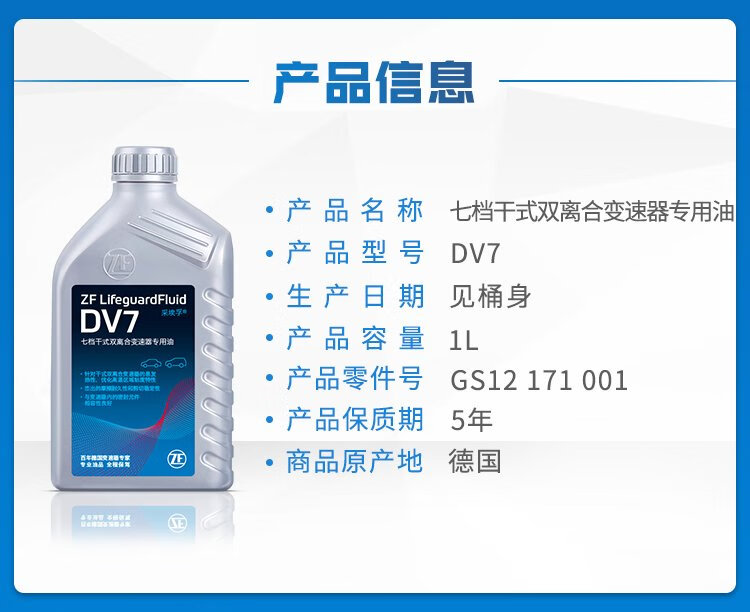 ZF DV7 dry dual-clutch transmission oil/gear oil Sagitar Magotan Bora Lavida Golf 6/7 Octavia 1L