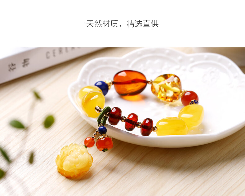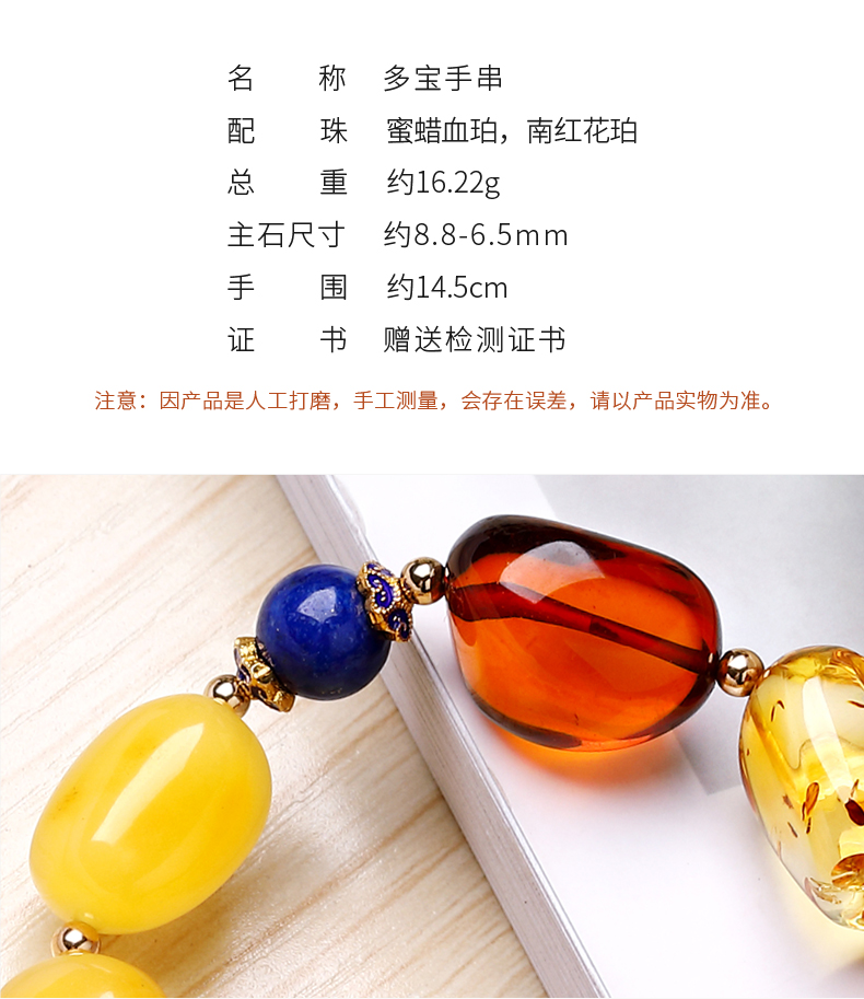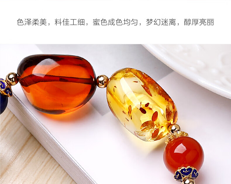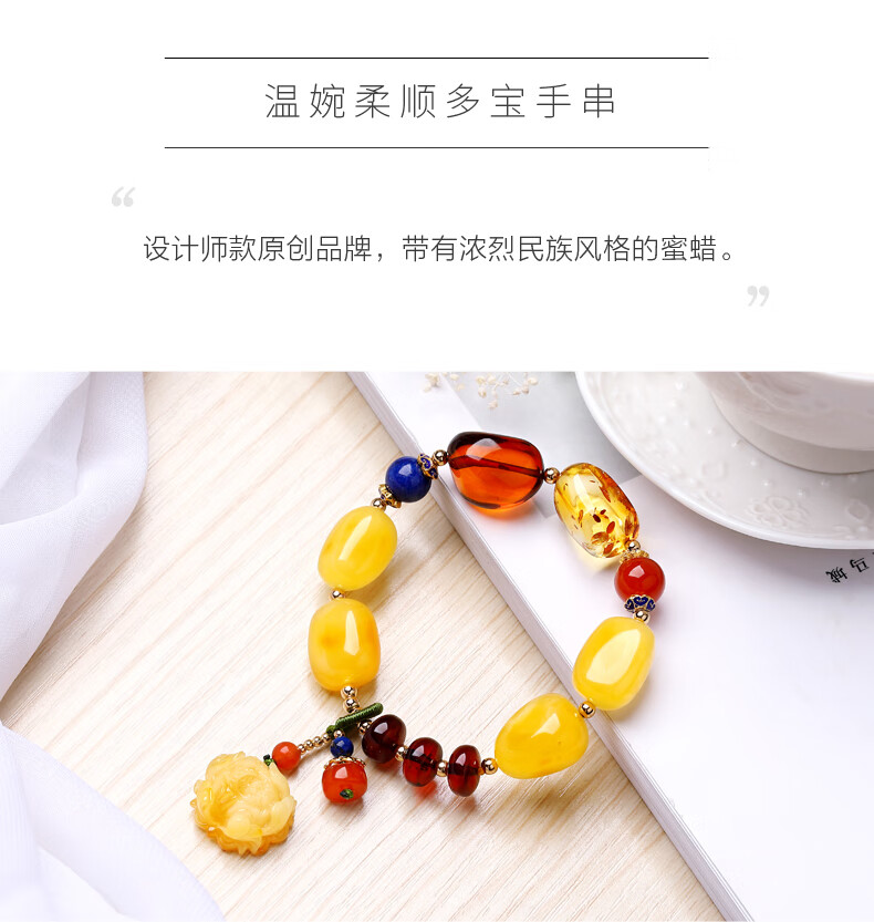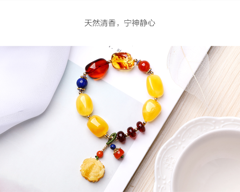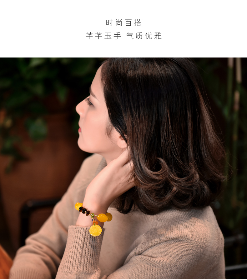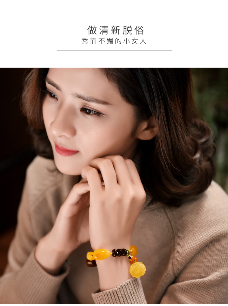 Ouchini Beeswax Duobao Bracelet Blood Amber Amber and Amber Rose Pendant Women's 4007 Duobao Bracelet (Ready Shipping)