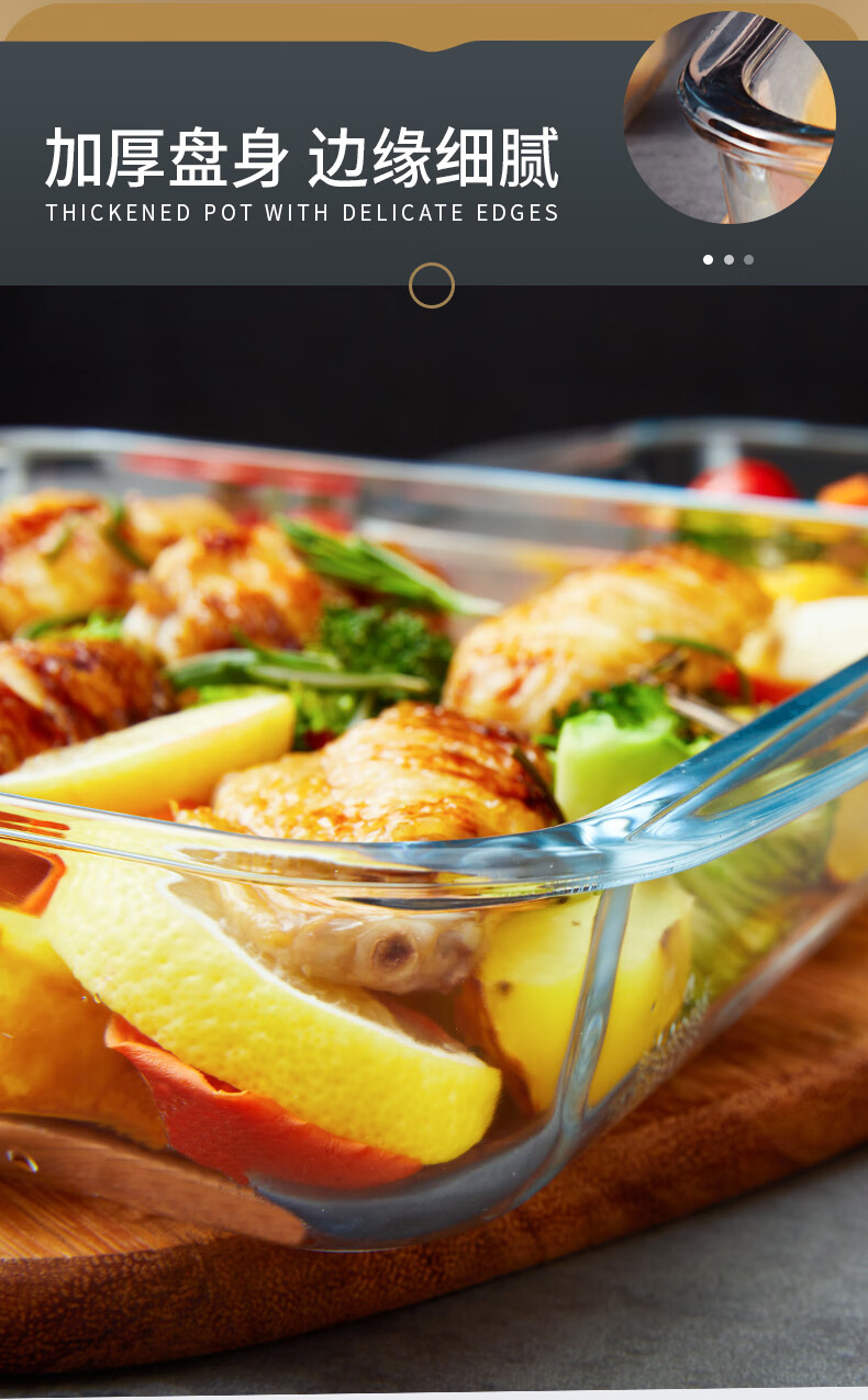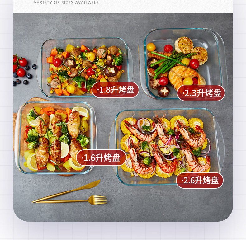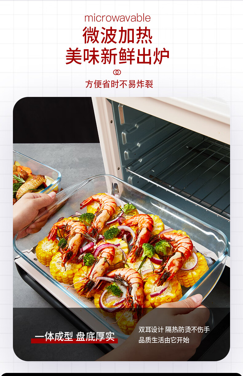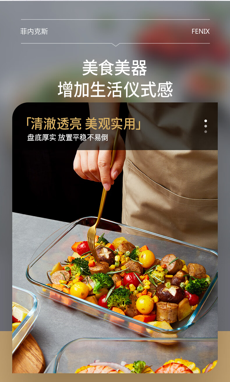 Phoenix tempered heat-resistant glass baking pan rectangular household double-ear oven steamed fish plate microwave suitable for square 2.3L