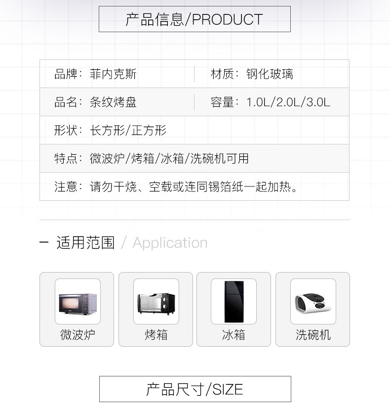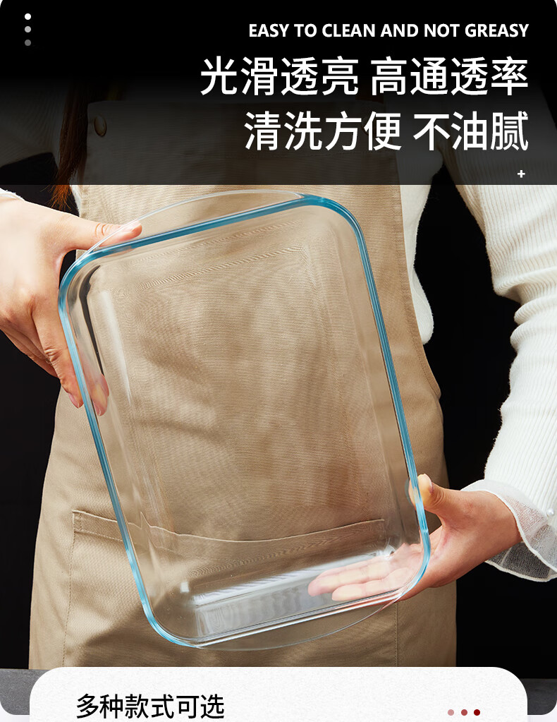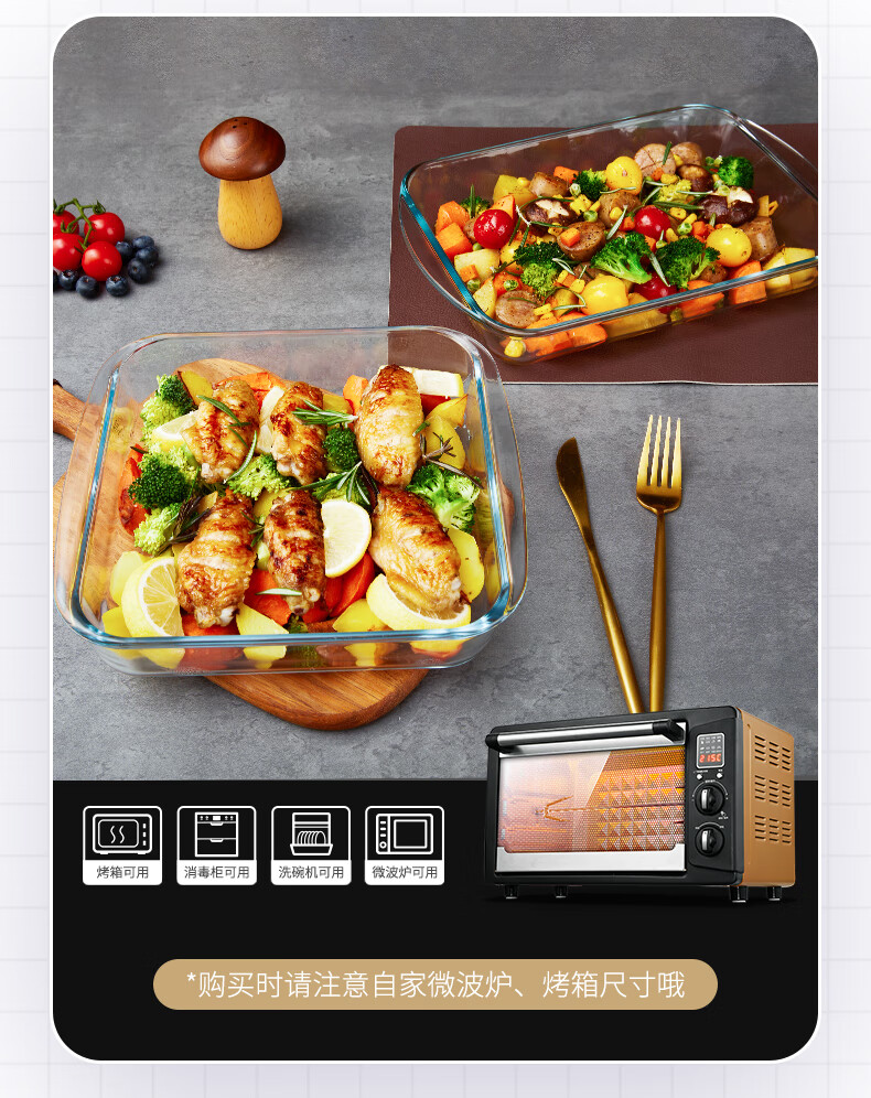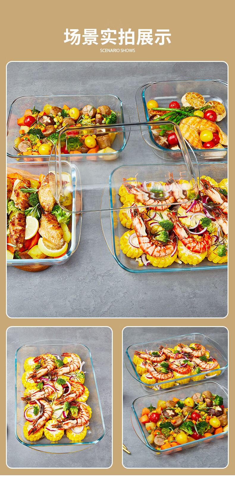 Phoenix tempered heat-resistant glass baking pan rectangular household double-ear oven steamed fish plate microwave suitable for square 2.3L