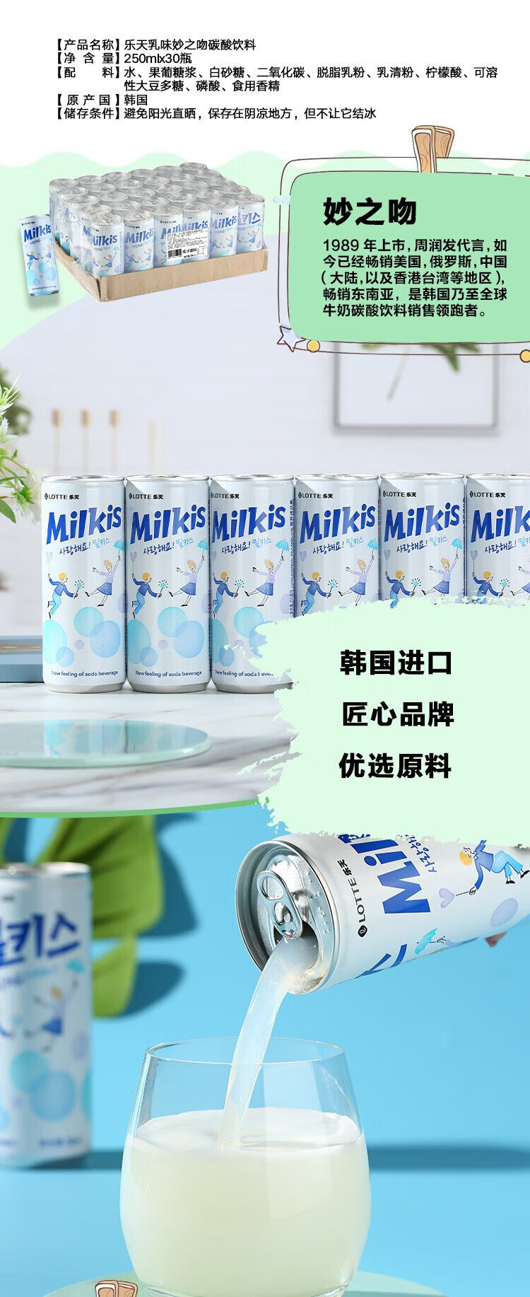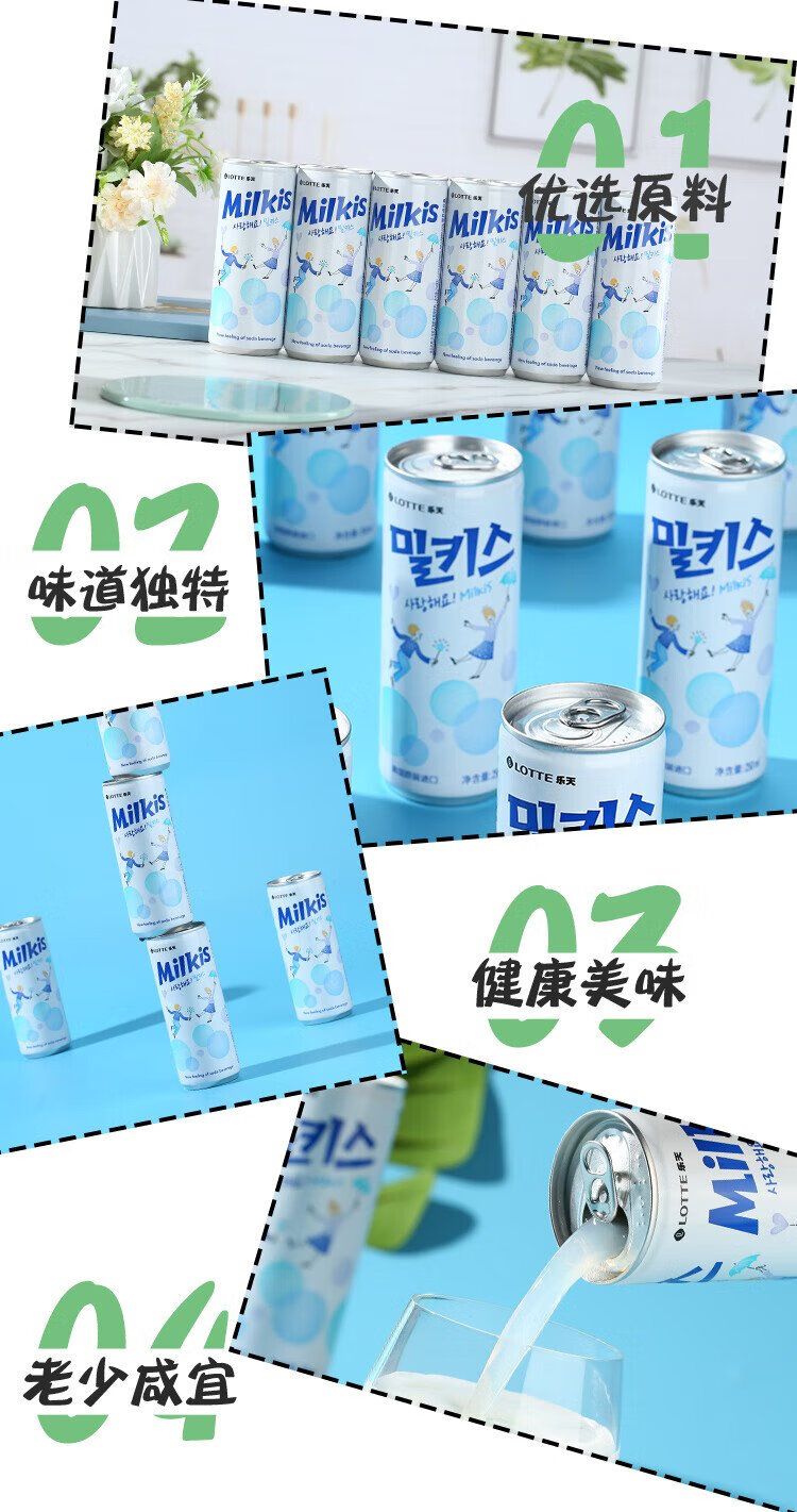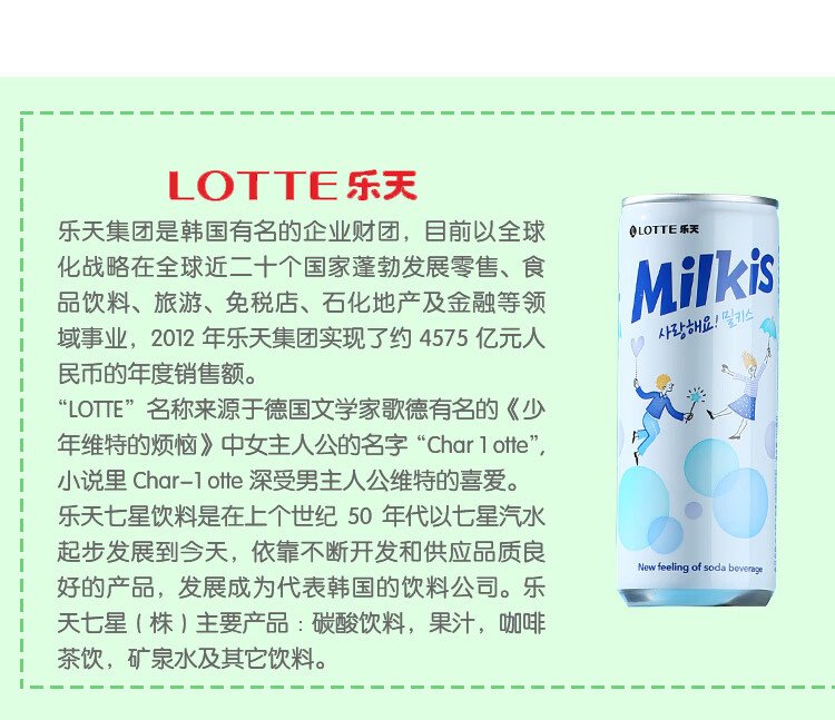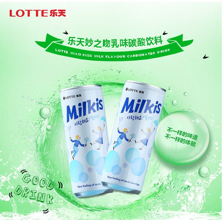 LOTTE Miaozhi Kiss milky carbonated drink 250ml*30 cans full box imported from Korea