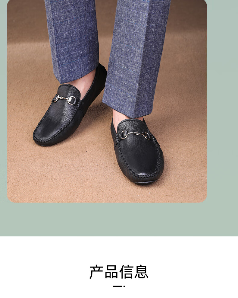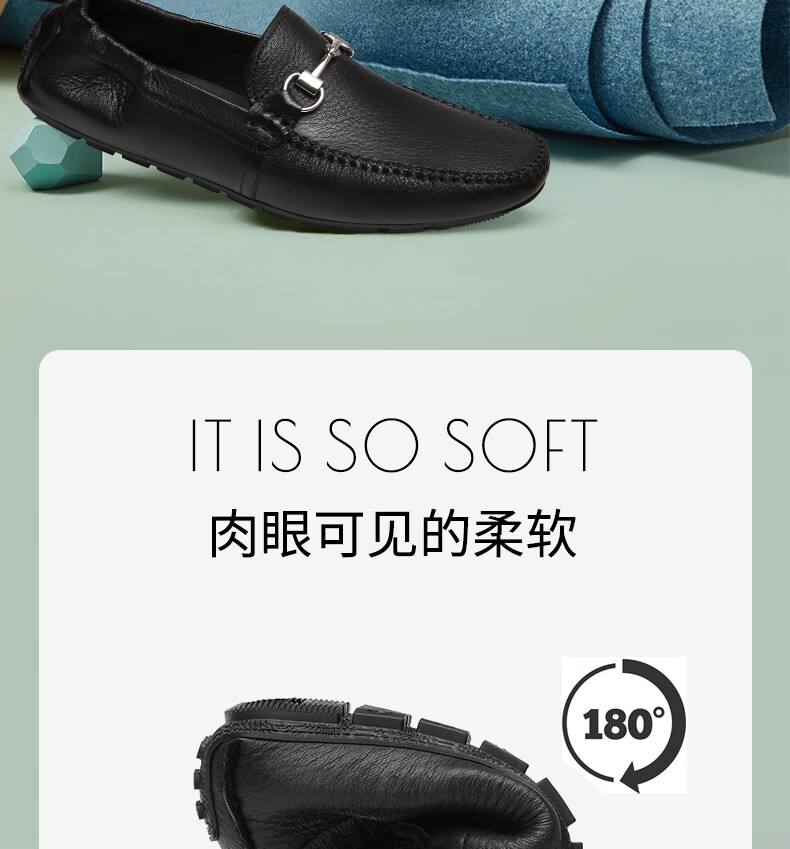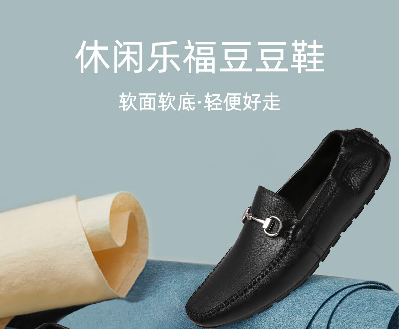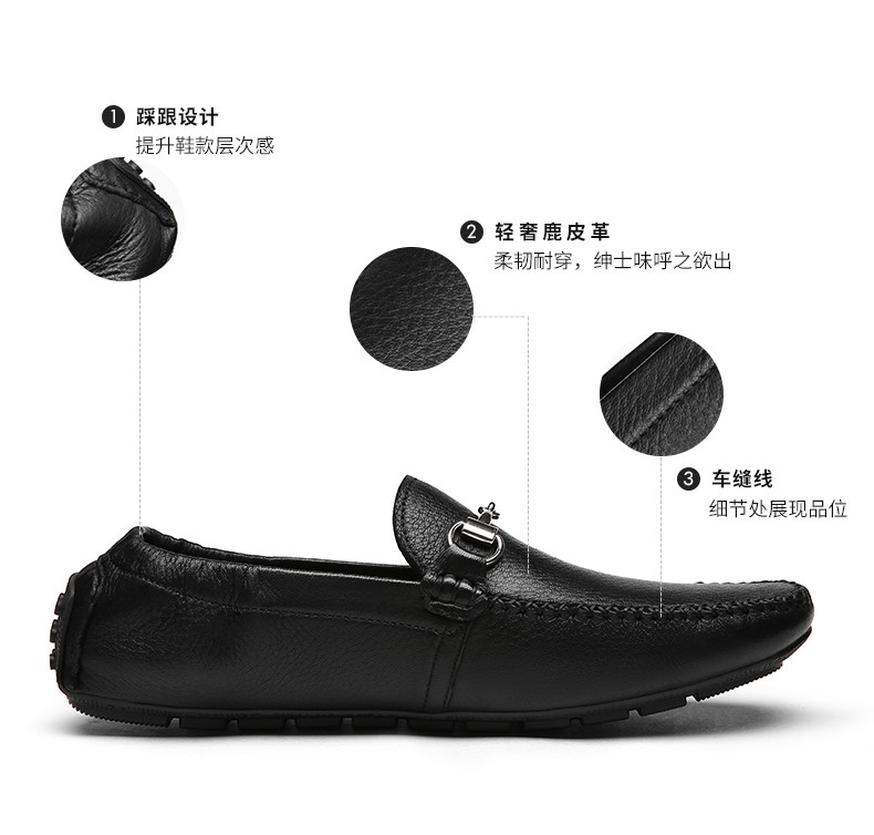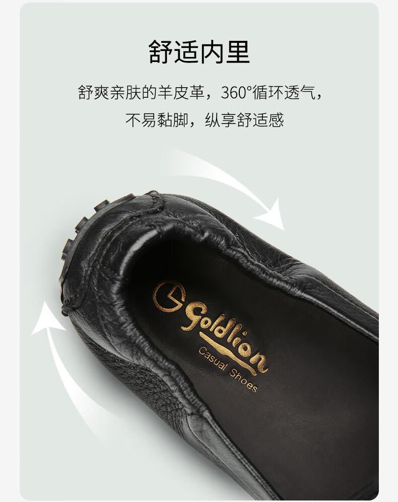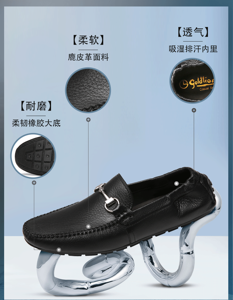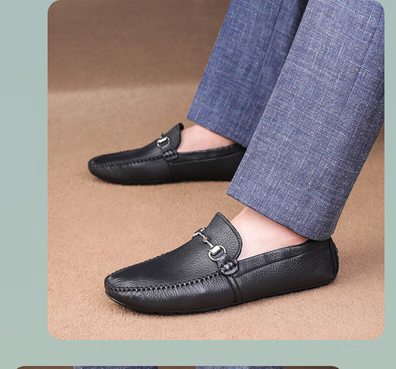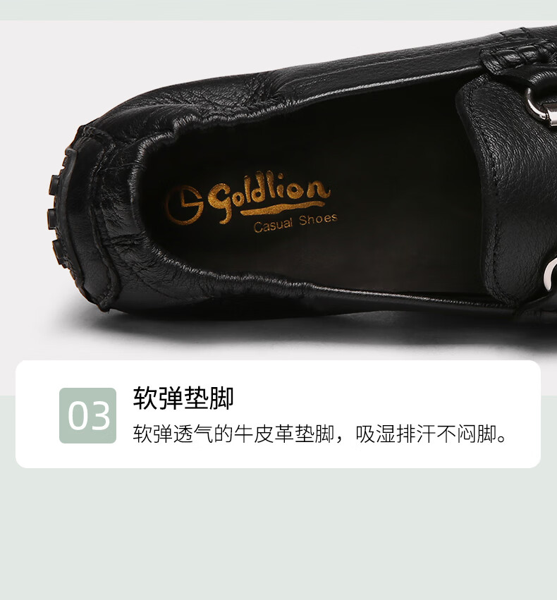 Goldlion Bean Shoes Men's Shoes Autumn Business Casual Shoes Deer Leather Shoes Soft Slip-on Driving Loafers Black 40