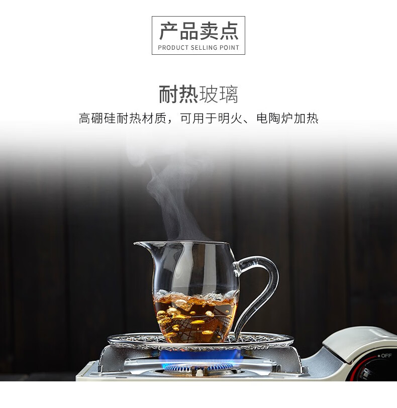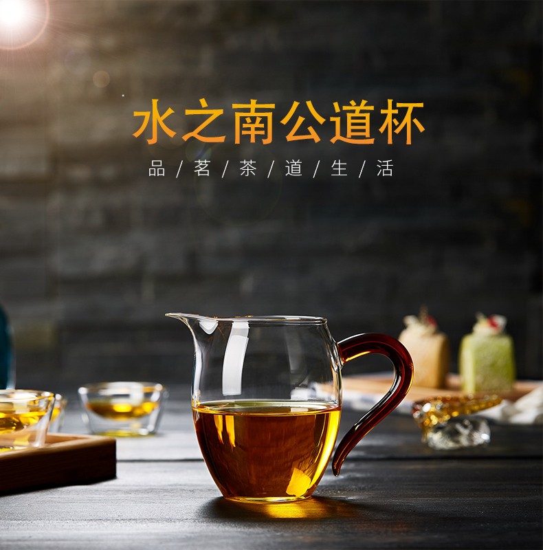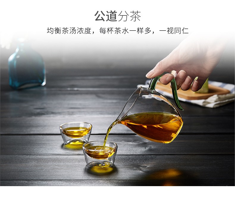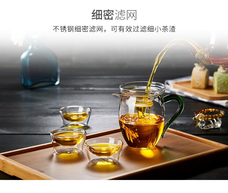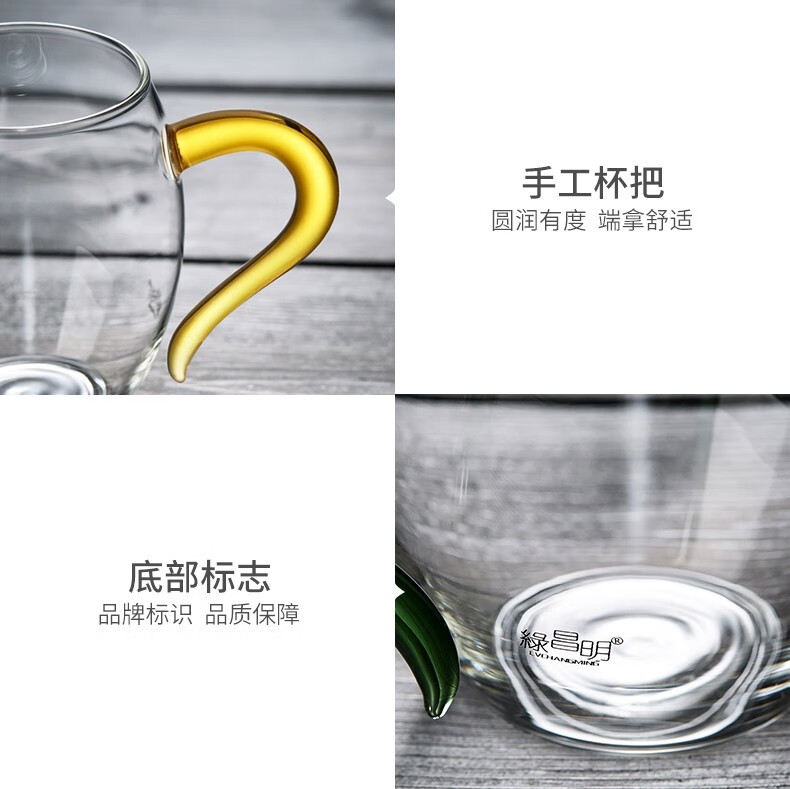 Lvchangming Glass Fair Cup with Tea Filter Tea Divider Tea Sea Thickened Heat-resistant Kung Fu Tea Accessories Set Yellow Handle Male Cup 350ml