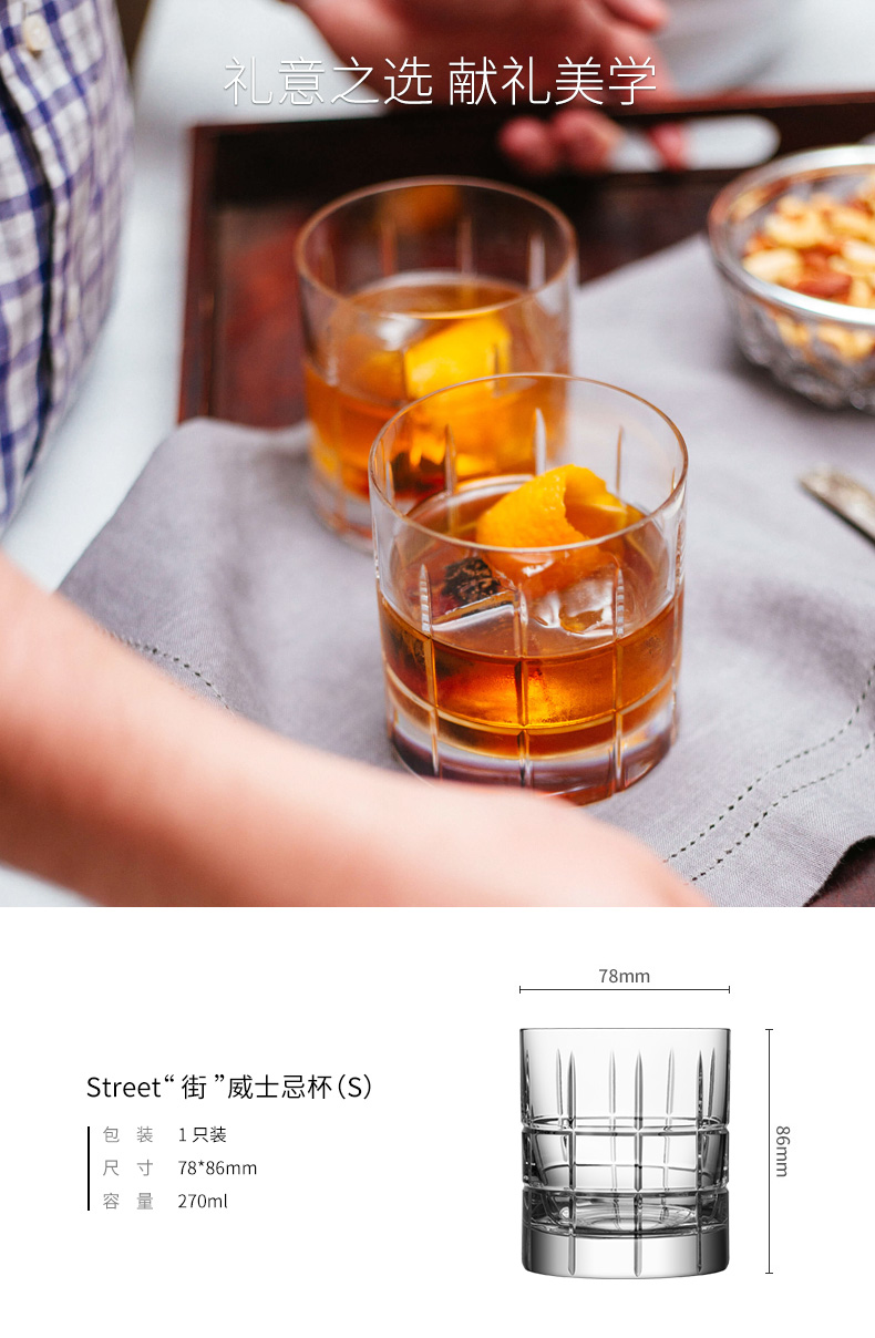 Orris Whiskey Cup STREET Home Wine Set Gift Box Wine Glass Handmade Crystal Glass Mid-Autumn Festival Gift Whiskey Cup (M)-1 Pack 360ml 1 Pack
