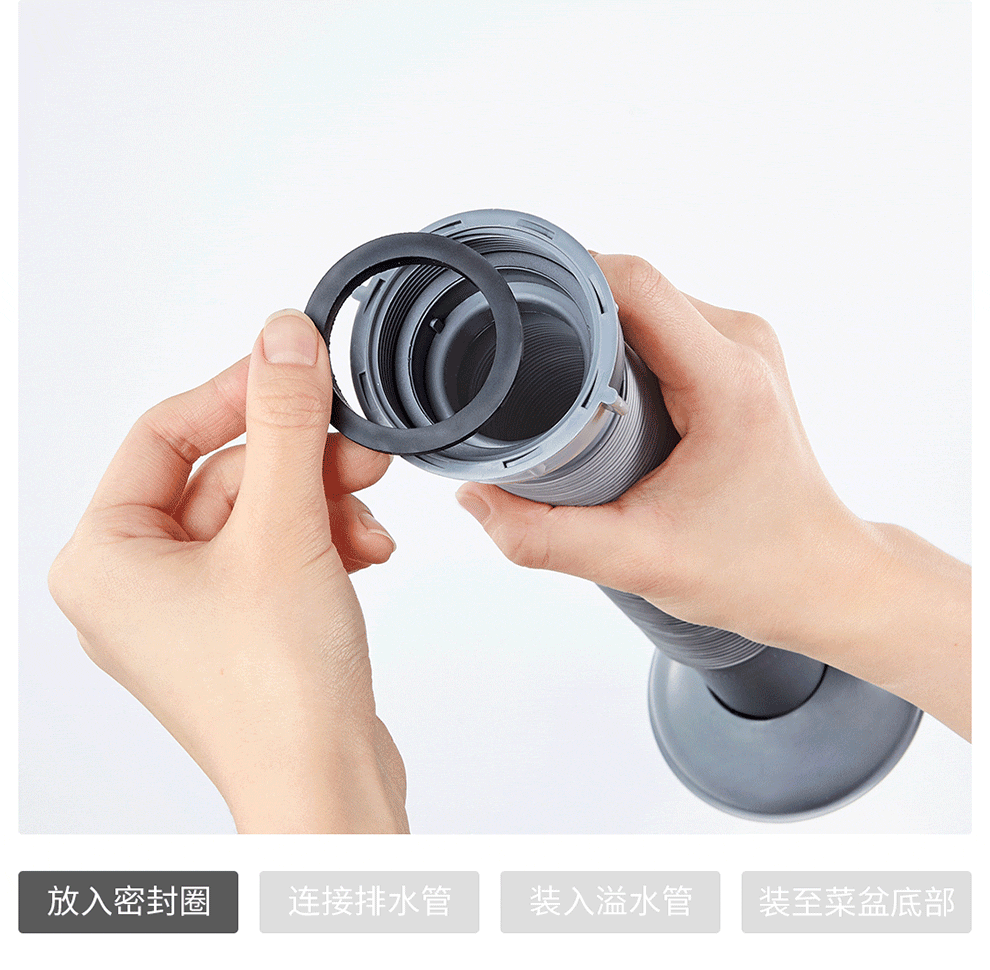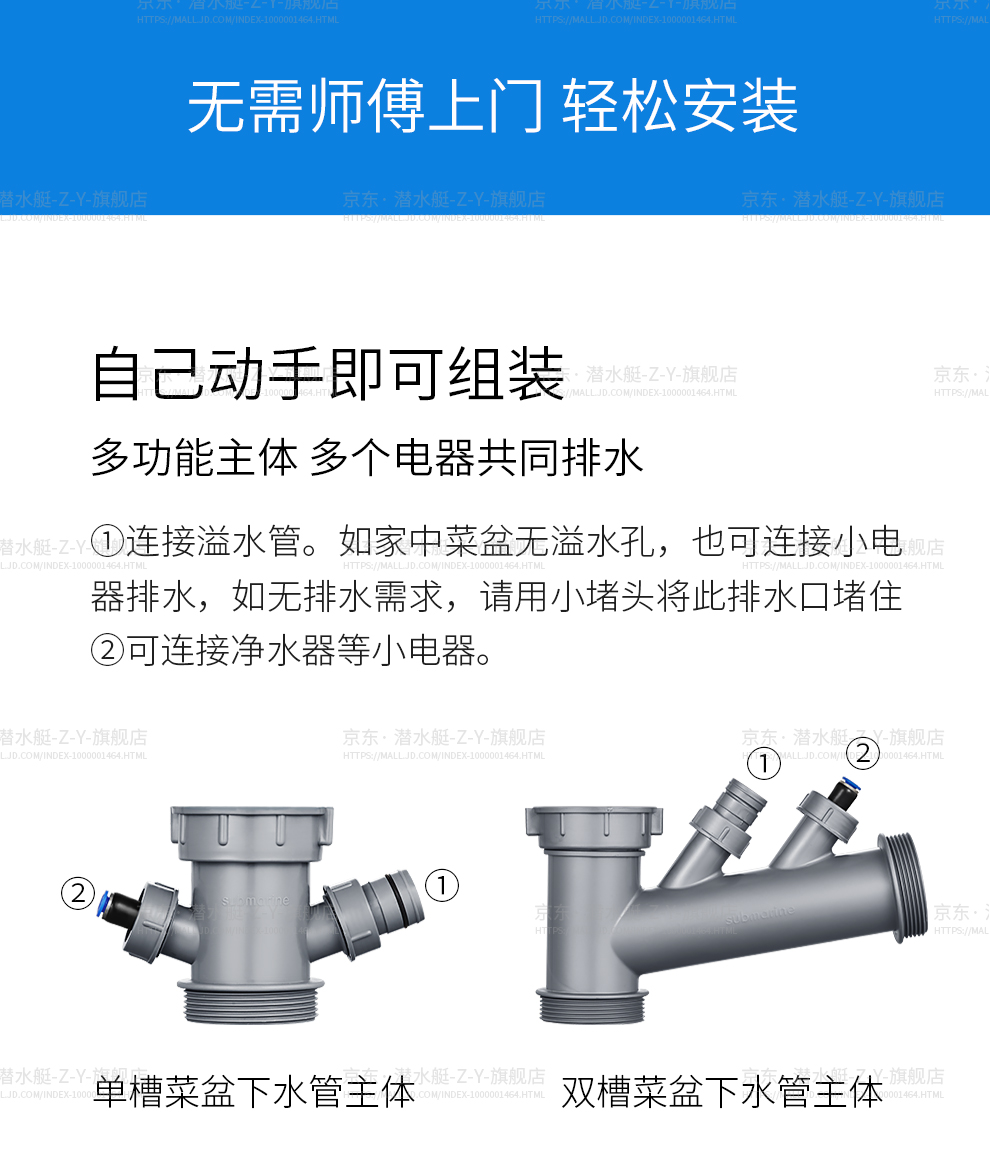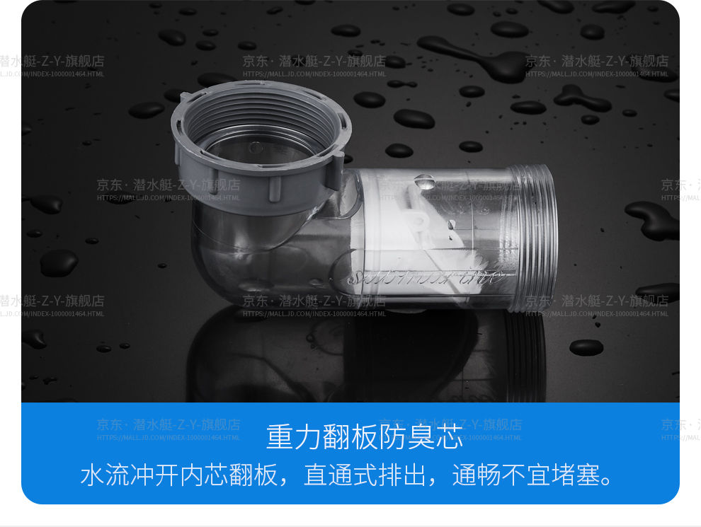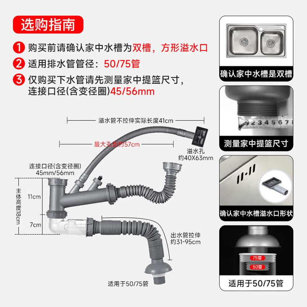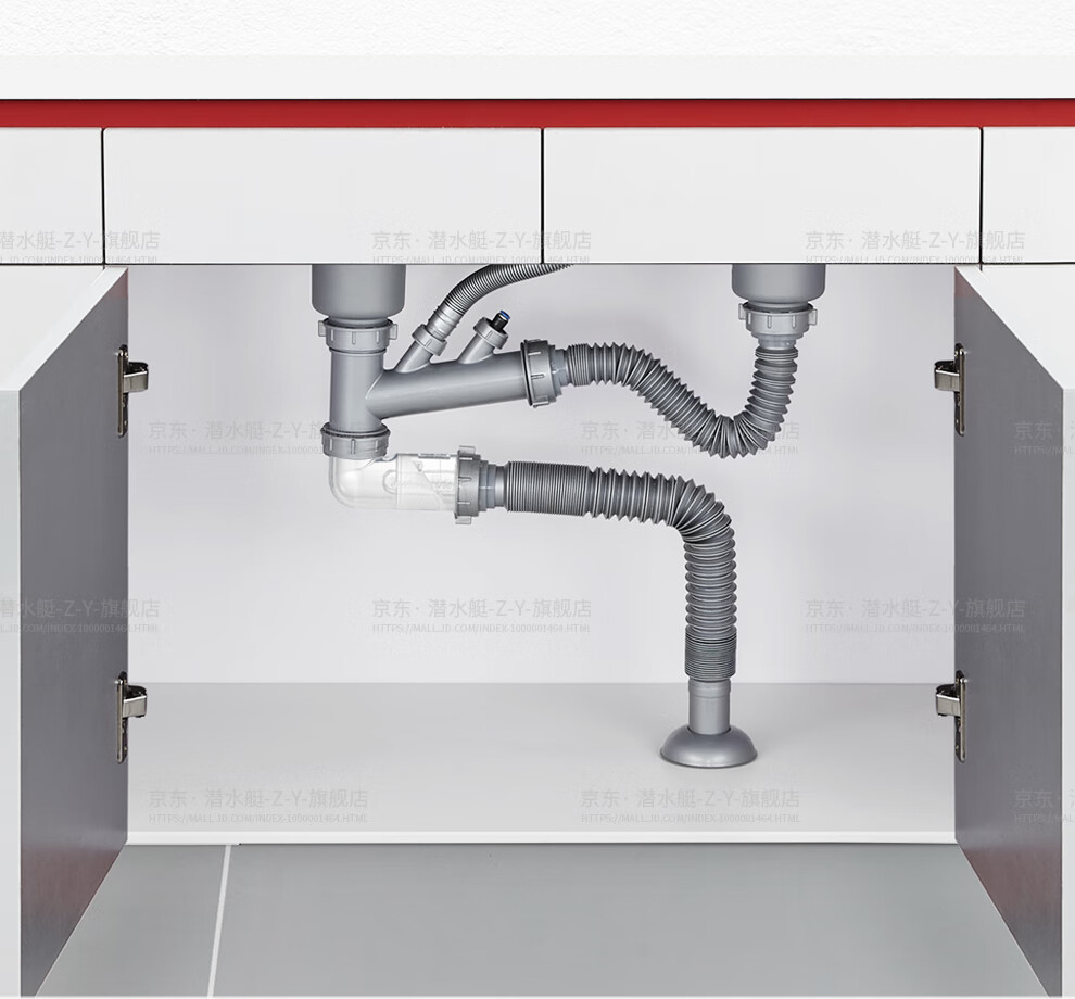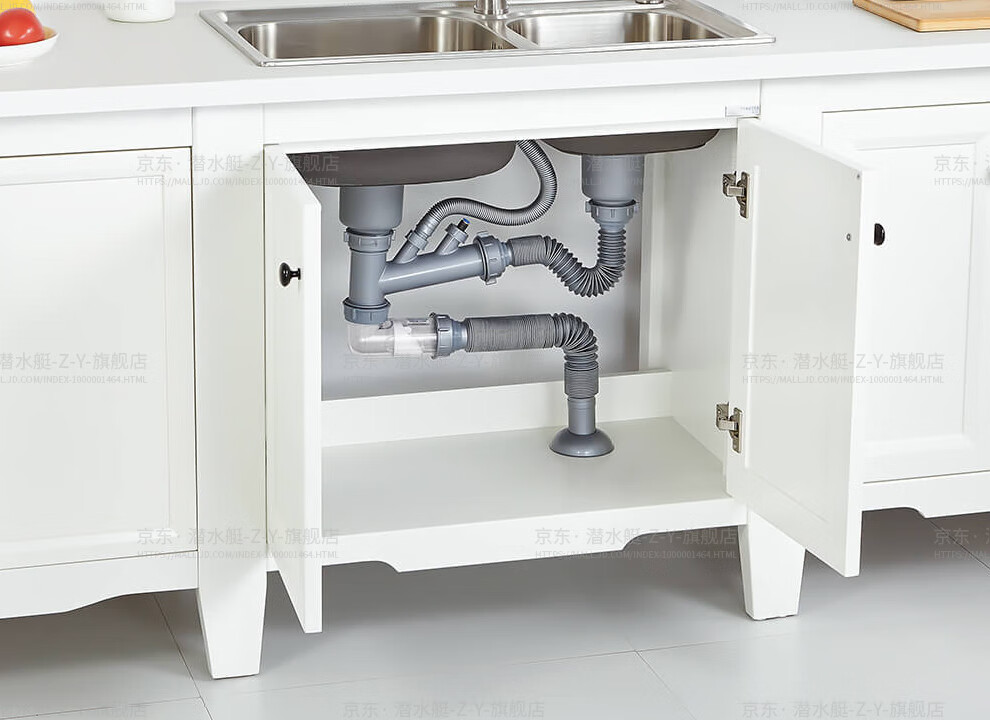 Submarine CSQ-2C vegetable basin drain pipe double-slot sink deodorant space-saving drain pipe ABS material stretched 95 cm