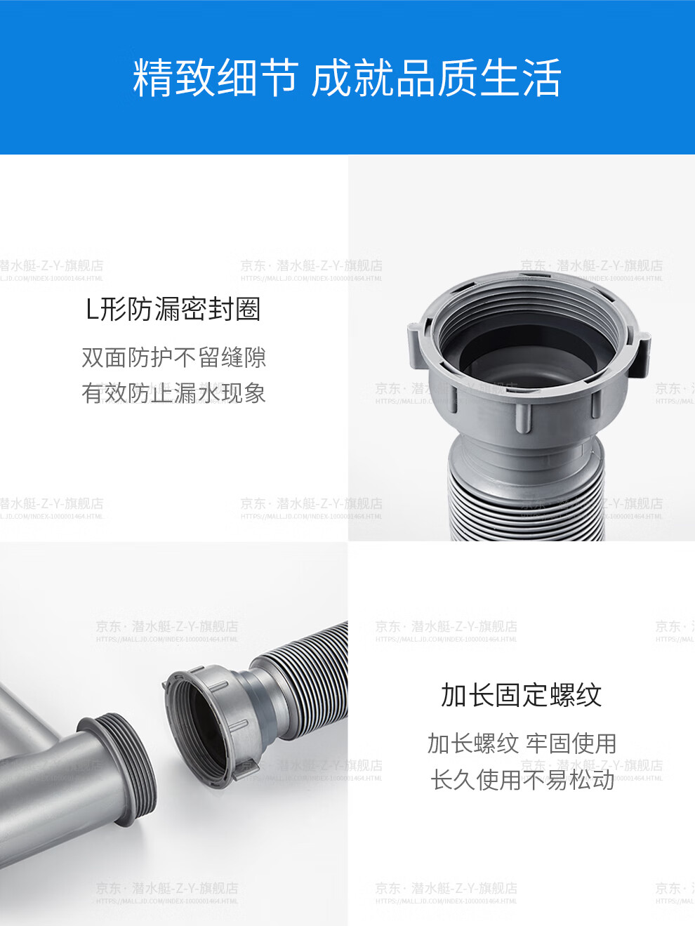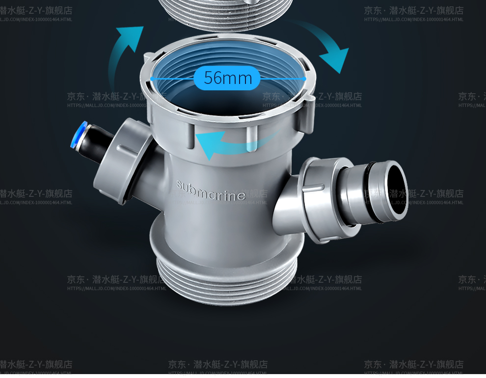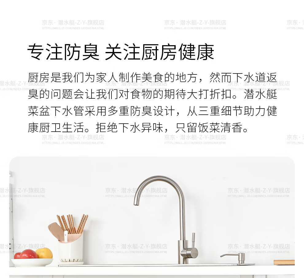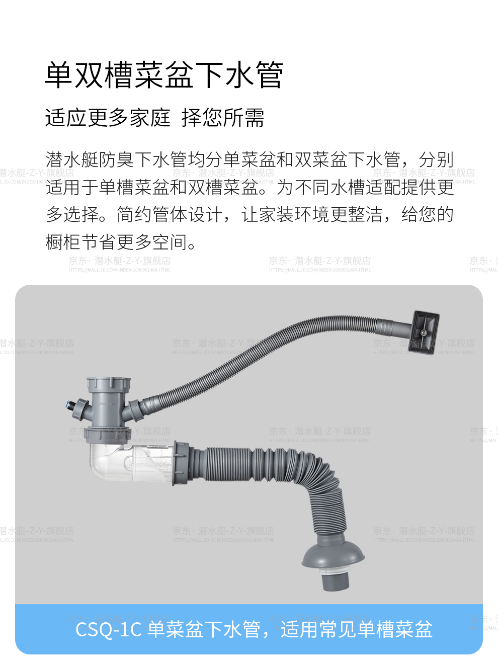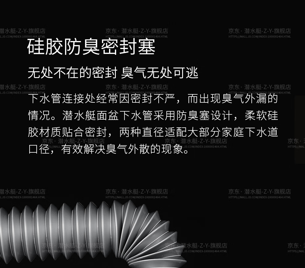 Submarine CSQ-2C vegetable basin drain pipe double-slot sink deodorant space-saving drain pipe ABS material stretched 95 cm