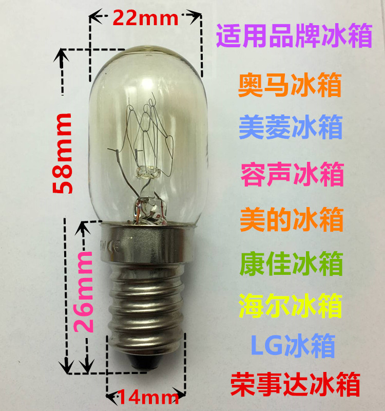 Shanbei is suitable for Omar Meiling Rongshengmei Konka TCL Haier brand refrigerator light bulb accessories e14 small screw mouth 10W 15W refrigerator light bulb 15W refrigerator long screw 1 piece 11-15W
