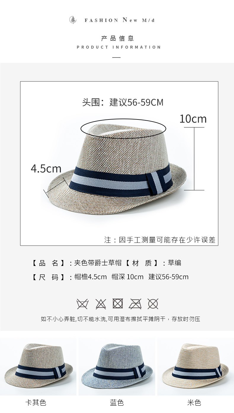 BILLSURF Straw Hat Men's Summer Travel Sun Hat Women's Top Hat Seaside Vacation Hat Travel Sun Protection Sun Hat Jazz Hat Gentleman Top Hat Spring and Summer Khaki Adult One Size