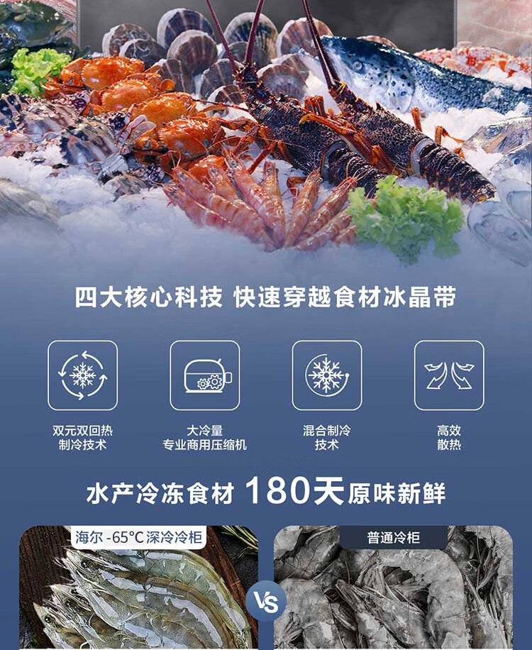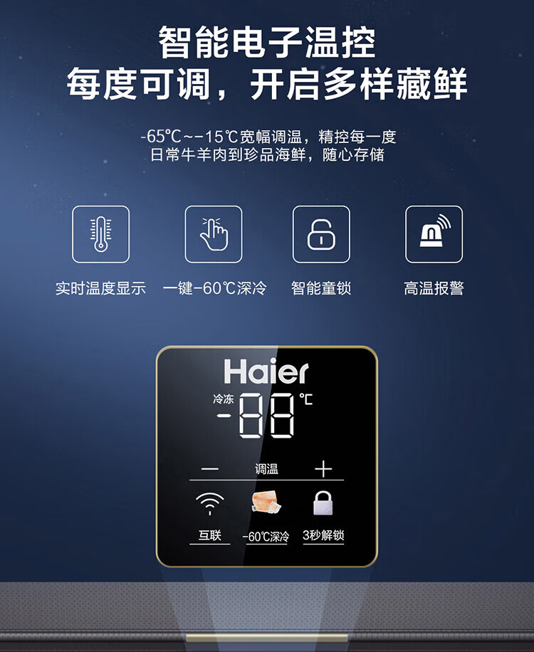 Haier single-temperature freezer household ultra-low temperature minus -65/-70 degrees deep freezing quick freezing commercial large-capacity seafood quick freezer DW-60W151/321/451EU1 trade-in DW-60W321EU1丨-65 degrees low temperature丨 321L