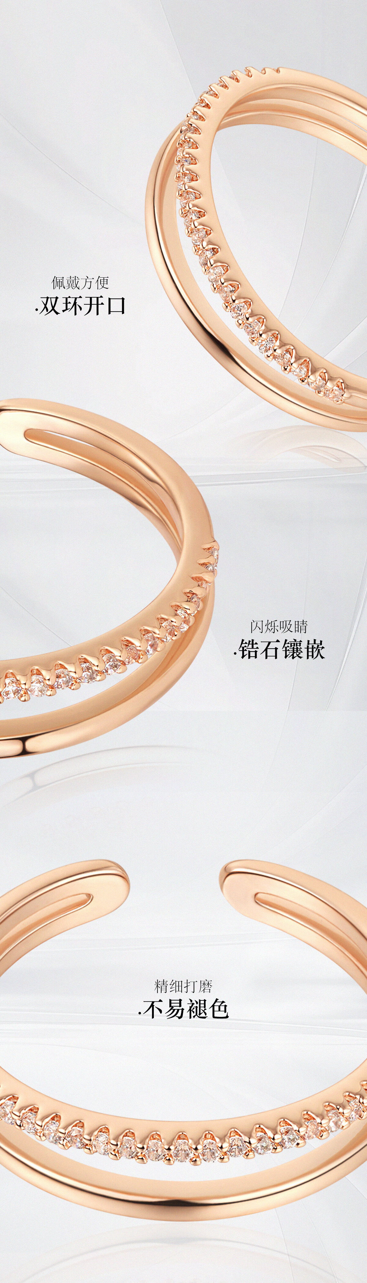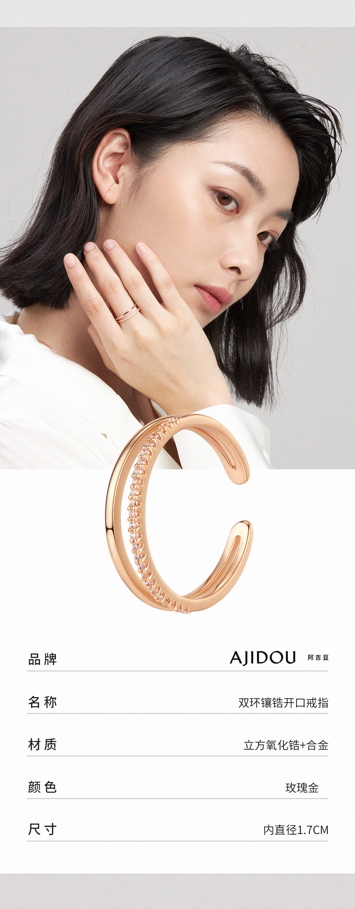 AJIDOU Birthday Ajidou Ring Double Ring Goddess Sweet Diamonds Finely Adjustable Open Ring Finger Birthday Gift for Women Rose Gold
